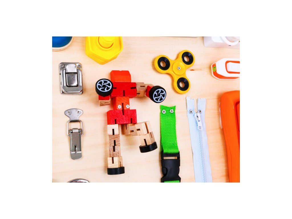 Senzorická naučná deska je multifunkční hračka, určená pro děti od 3 let. Sada se skládá z desky s připevněnými prvky, se kterými se dítě setkává v běžném životě. Hrou dítě podporuje dovednosti v oblasti jemné motoriky, logického myšlení a analýzy příčin a následků. Deska má zvukové prvky a světelné prvky na ovladači. Sada je napájena 2 x AA bateriemi, které nejsou součástí balení.