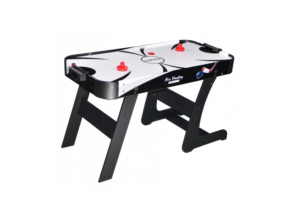 Užijte si napínavou zábavu ve dvou s tímto kvalitně zpracovaným stolem na air hockey. Hladká hrací plocha s vestavěným ventilátorem vytváří vzduchový polštář, díky kterému puk dokonale klouže bez tření. Stůl je vyroben z odolné MDF desky a jeho stabilní konstrukce zajišťuje pevnost i při intenzivní hře. Po skončení zápasu ho navíc snadno postavíte do svislé polohy, což šetří místo při skladování.