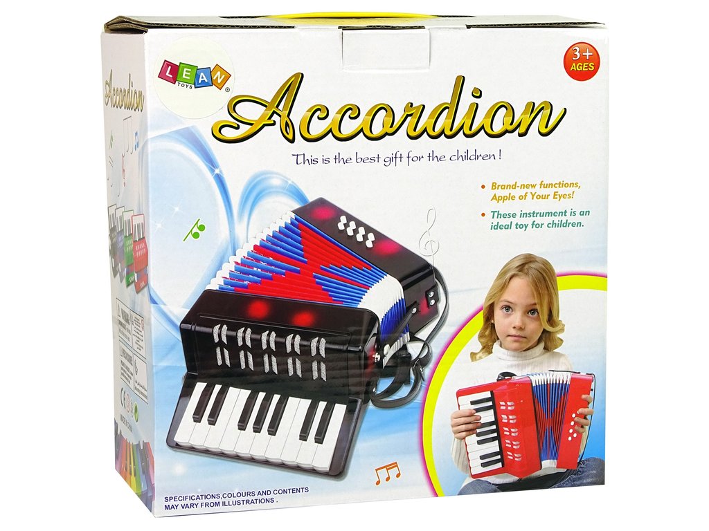 Dokonale rozvíjí motorické dovednosti a sluch dítěte a zároveň dokonale připravuje dítě na hraní na skutečný nástroj. Princip činnosti akordeonu je stejný jako u skutečného nástroje, pro vydávání zvuku je třeba rozložit a složit harmoniku, akordeon má basová a zvuková tlačítka a ruční rukojeť. S trochou praxe začne akordeon vydávat nádherné zvuky.
