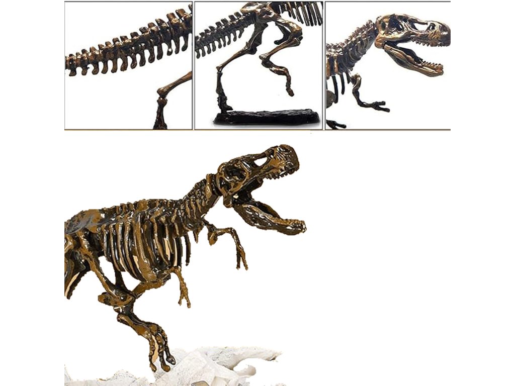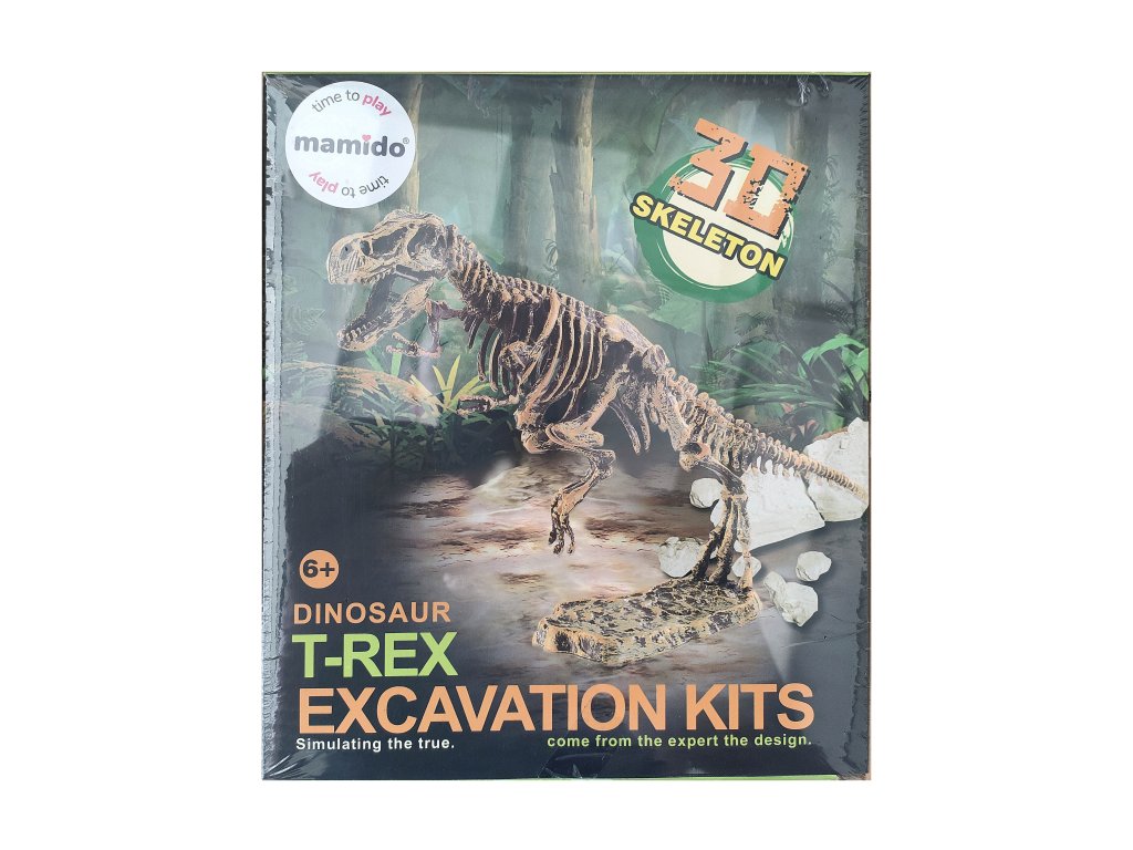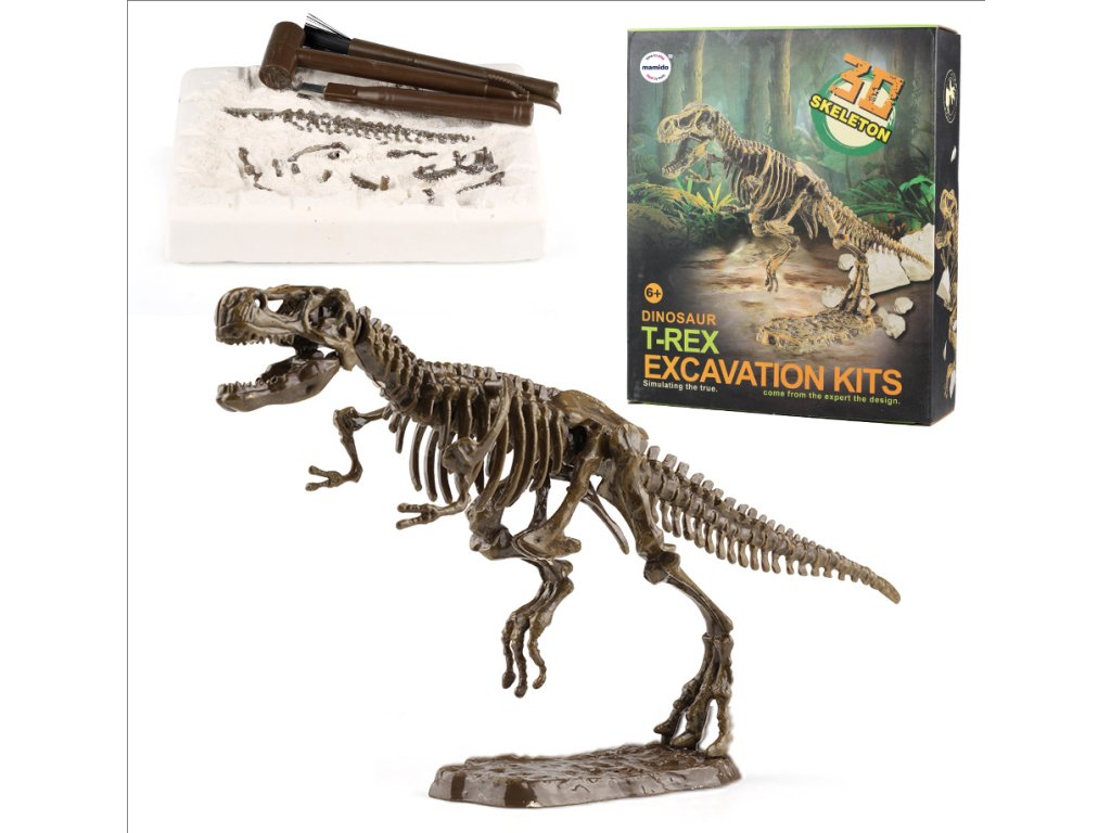 Zábavná archeologická sada, kde děti mohou pomocí nástrojů postupně odkrýt uložené části kostry a následně složit realistický 3D model T-Rex. Ideální pro malé badatele a fanoušky dinosaurů – rozvíjí trpělivost, jemnou motoriku a učí principy objevování. Kostra po sestavení stojí samostatně, takže ji lze vystavit jako dekoraci do pokoje.