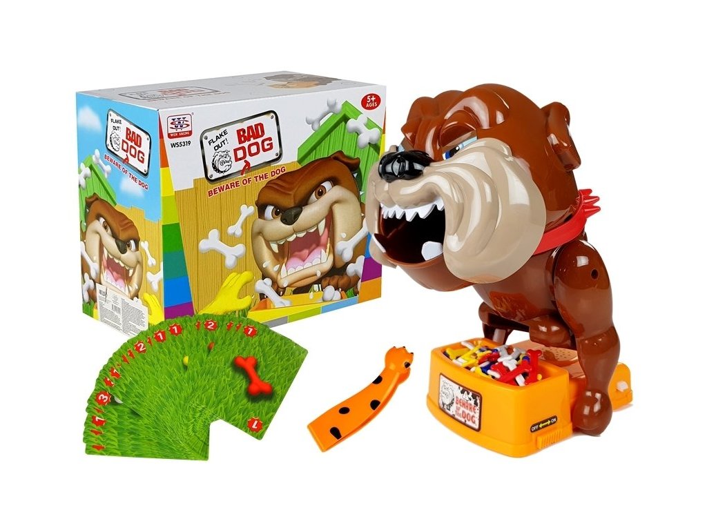 Rozložte všechny karty na stůl a vložte kosti do misky naštvaného psa. Poté kosti pomalu a opatrně vytáhněte podle barvy a množství zobrazeného na kartě. Hru provádějte opatrně, aby se naštvané zvíře "neproudilo".
