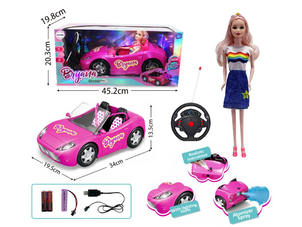 Stylová panenka s moderním růžovým kabrioletem na dálkové ovládání potěší každou malou milovnici módy a aut. Auto nabízí realistické detaily – svítící přední světla, volant s ovládacími prvky a dokonce i kouřový efekt z výfuku. Panenka je součástí sady a lze ji posadit přímo do auta, takže hra je ještě zábavnější a živější.