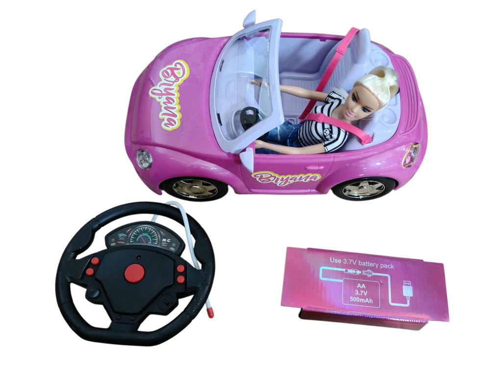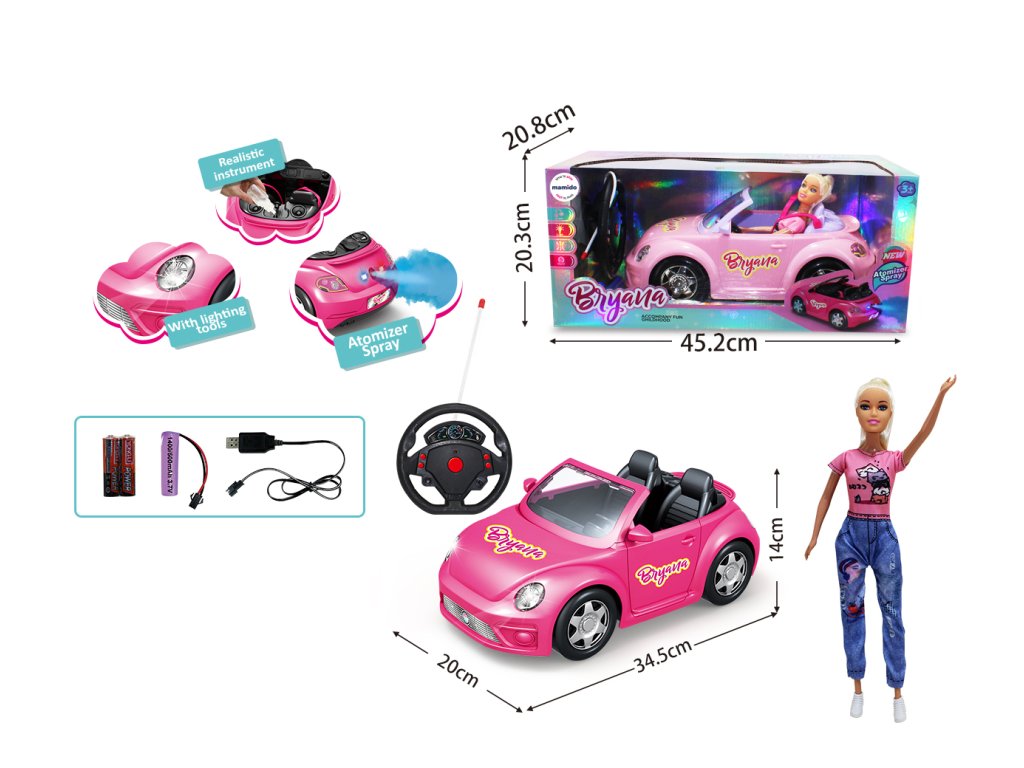 Stylová panenka s moderním růžovým kabrioletem na dálkové ovládání potěší každou malou milovnici módy a aut. Auto nabízí realistické detaily – svítící přední světla, volant s ovládacími prvky a dokonce i kouřový efekt z výfuku. Panenka je součástí sady a lze ji posadit přímo do auta, takže hra je ještě zábavnější a živější.