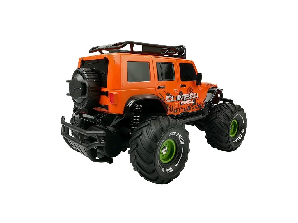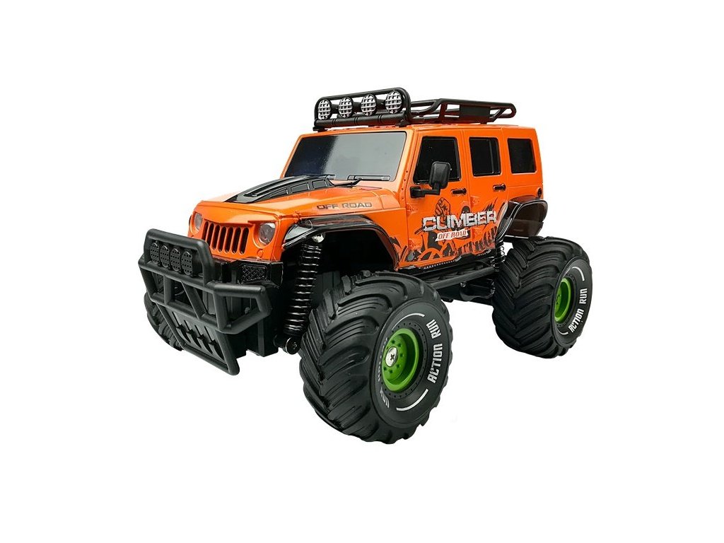 Terénní auto na dálkové ovládání Jeep, které dokáže překonat jakoukoli překážku. Funguje dokonale jak na asfaltu, tak i na nerovných kamenech nebo lesním porostu. Měkká, gumová kola vozidla zaručují vysokou přilnavost k různým typům podloží a velké tlumiče nárazů vám umožňují projet obtížnými překážkami.