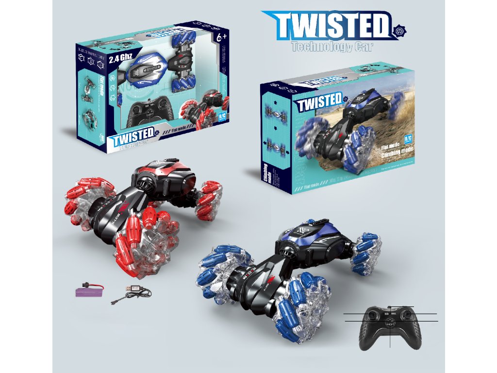 Dálkově ovládané auto Mamido Twisted 360° v červené barvě, zaručuje skvělou zábavu. Má mnoho funkcí, jako je pohon 4x4, oboustranná jízda, odolnost vůči pádu. Vysoké odpružení a velká kola umožňují bezproblémovou jízdu na nerovném terénu. Vůz je řízen dálkovým ovládáním 2,4 GHz, které zajišťuje bezproblémové spojení.