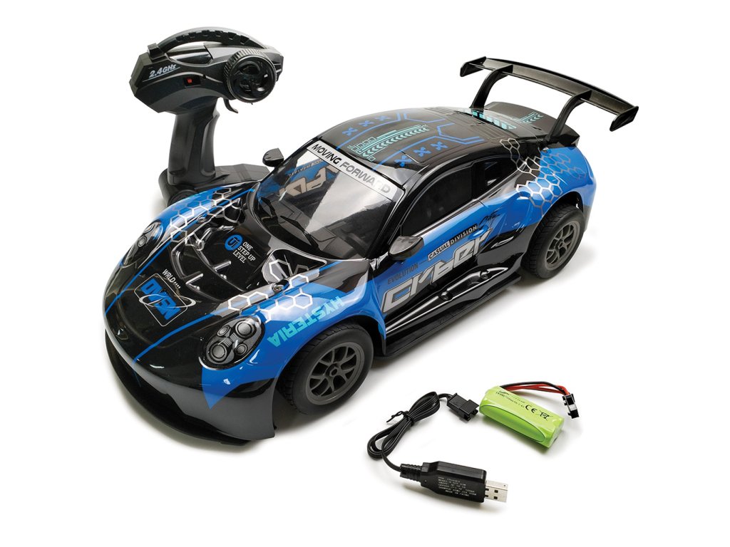 - 1× RC drift auto (modrá nebo oranžová varianta)