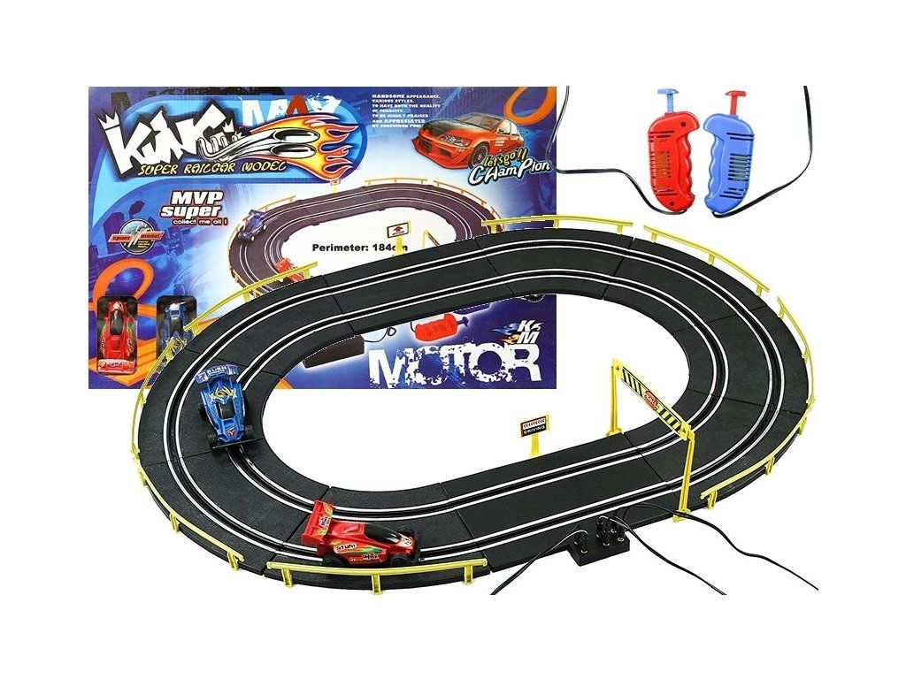 Dětská závodní autodráha pro 2 hráče s dálkovým ovládáním se stane oblíbenou hračkou Vašeho dítěte. Skvělá zvodní dráha s okruhem velkým 184 cm přinese spoustu zábavy vašim ratolestem ale i rodičům. Autíčka se ovládají pomocí ovladače a nabízí napínavé závody. Autodráha je zabalena v barevné krabici a je ideální jako dárek. Potřebné jsou 4 x 1,5V baterie (nejsou součástí dodávky).