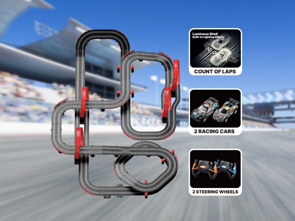 Velká autodráha se skládá z ostrých začátek a čtyř 360 stupňových smyček. Součástí sady jsou dvě autíčka, dva ovladače a počítadlo kol. Autodráha má dva rychlostní režimy a to pomalý a rychlý.