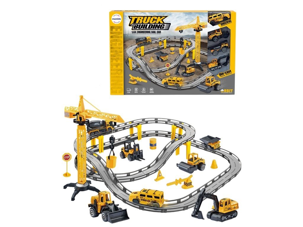 Velká stavební sada s drahou nabízí dětem hodiny kreativní zábavy. Set obsahuje elektrické auto, 3 kovové stavební stroje, pohyblivý jeřáb a dopravní značení. Díky propracovaným detailům působí jako skutečné staveniště a podporuje rozvoj fantazie i jemné motoriky dětí.