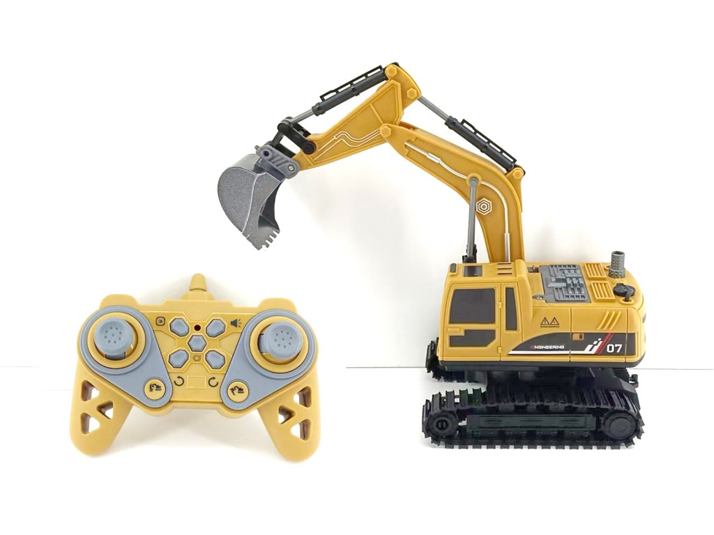 Realistická RC pásová bagrová hračka v měřítku 1:22 nabízí dětem vzrušující zážitek ze hry se stavební technikou. Model má kovovou lžíci, realistické světelné a zvukové efekty a speciální funkci kouře (spray efekt), která dodává hře ještě více autentičnosti. Díky 11kanálovému dálkovému ovládání lze bagr přesně ovládat – pohybovat ramenem, otáčet nástavbou, posouvat se dopředu, dozadu i do stran.
