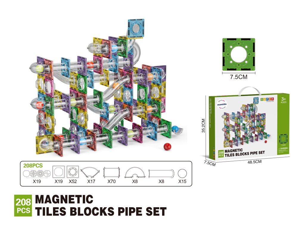 Velkolepá magnetická stavebnice pro děti, které milují akci, pohyb a tvorbu vlastních konstrukcí! Tato rozsáhlá sada s 208 dílky nabízí dokonale hladký povrch a průhledné části, které umožňují sledovat jízdu kuliček. Silné magnety zajišťují stabilitu i u vysokých staveb.