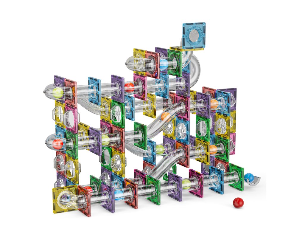 Díky kombinaci magnetických panelů, trubek, zatáček a spojek si děti mohou vytvořit složitou 3D kuličkovou dráhu, která je pokaždé jiná. Magnetické propojení umožňuje rychlé stavění, pevnost a bezproblémový průjezd kuliček. Sada podporuje logické myšlení, kreativitu a plánování.