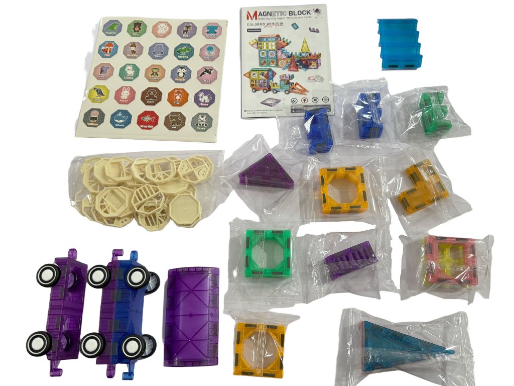 Stavebnice obsahuje 75 magnetických dílků různých tvarů – trojúhelníky, čtverce, oblouky, dlouhé panely, dekorativní okénka i speciální díly. Transparentní provedení v zářivých barvách podporuje vizuální vnímání a díky jednoduchému spojování si s ní poradí i menší děti. Ideální pro rozvoj kreativity, logického myšlení a prostorové představivosti.