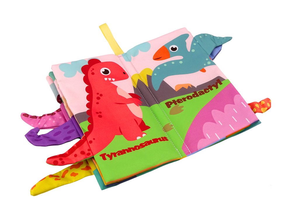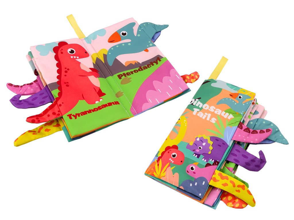 Jedním z unikátních prvků této knížečky jsou vyčnívající ocasy dinosaurů, které lze dotýkat a hrát si s nimi, což podporuje senzorický vývoj dítěte. Děti se mohou také učit první slovíčka v angličtině, protože názvy dinosaurů jsou uvedeny na každé straně, což činí tuto knížečku nejen hračkou, ale i edukativním nástrojem.