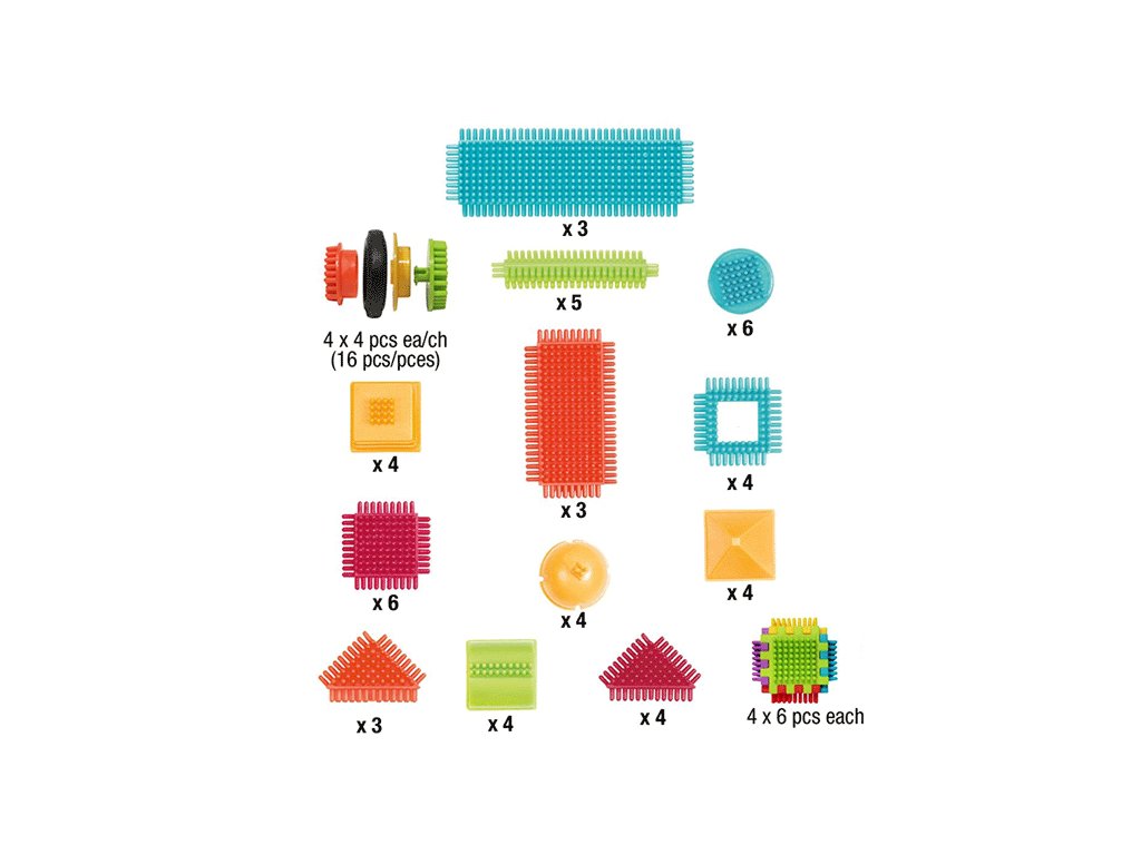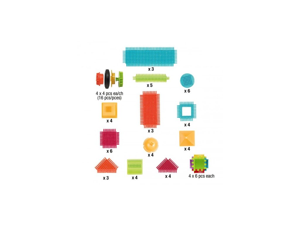 Tato sada barevných kostek je určena pro všechny děti od 3 let. Prvky jsou baleny v průhledném PVC sáčku se zipem. Toto řešení usnadňuje přenášení soupravy, stejně jako její bezpečné skladování - od teď zapomeňte na chybějící kostky. Sada vícebarevných prvků je vyrobena z vysoce kvalitního plastu, je certifikována CE.