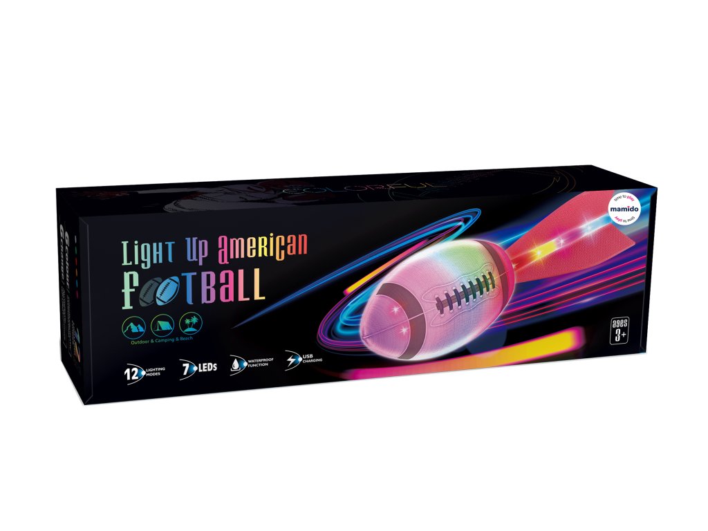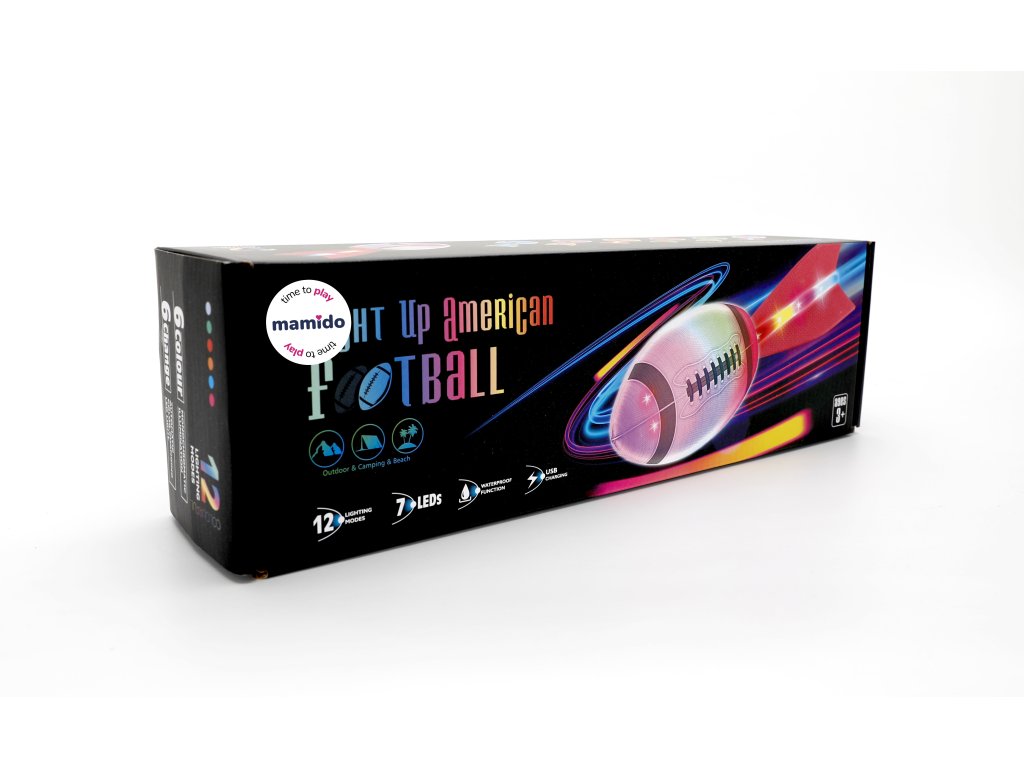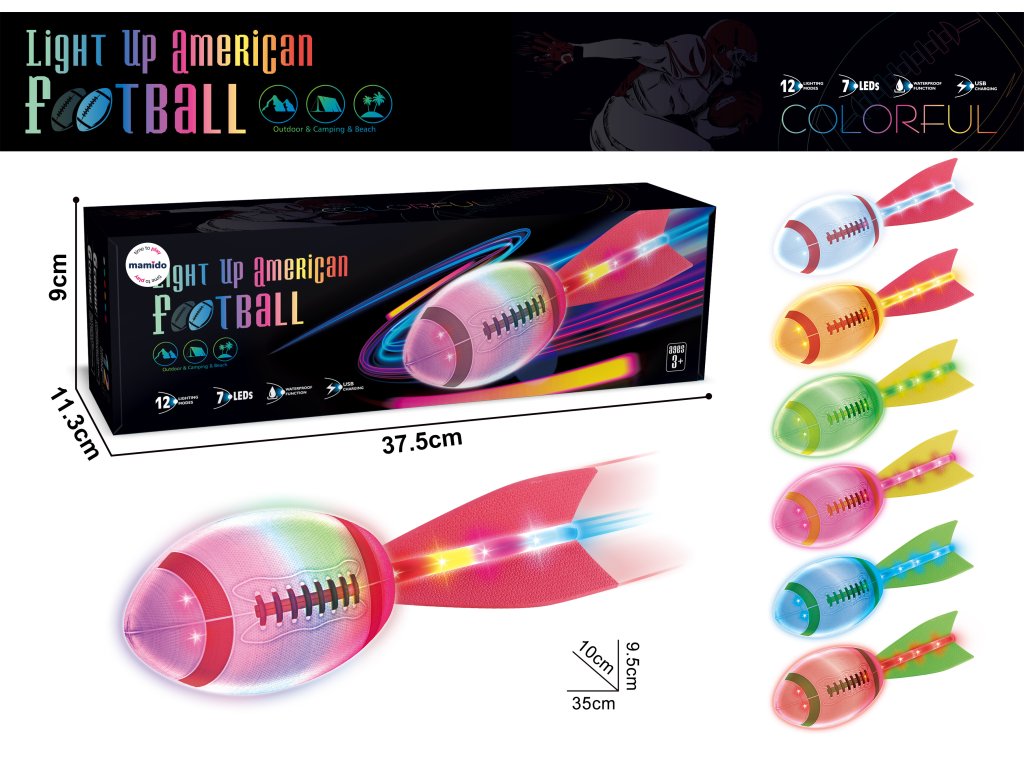 Barevný svítící míč na americký fotbal, rugby s ocasem, 12 světelných režimů MT1581