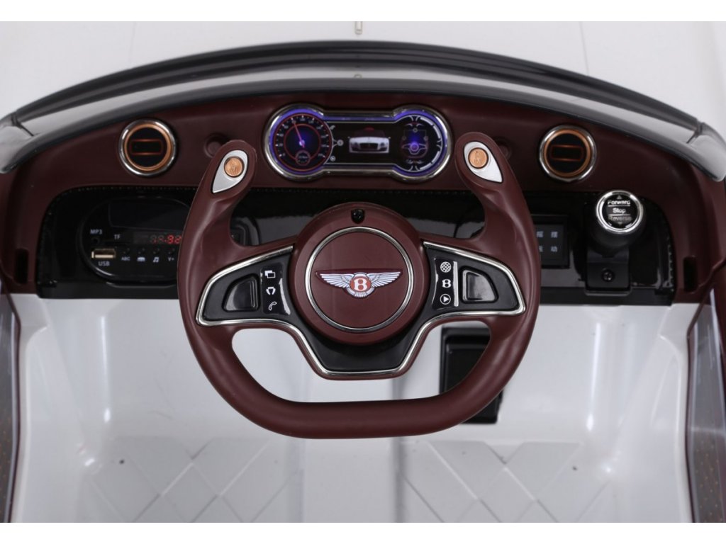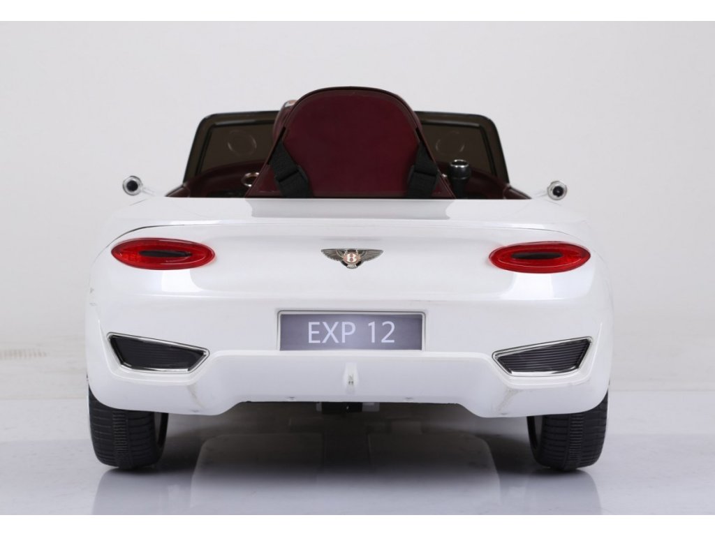 Exkluzivní elektrické autíčko značky BENTLEY s licencí na dálkové ovládání pro vaše ratolesti. Autíčko Bentley EXP 12 prototyp v bílém provedení zaujme svým designem, dvířky otevíracími směrem vzhůru na vzpěře a měkkými EVA polymerovými koly. Jedná se o nejnovější typ licencovaného elektrického autíčka Bentley EXP 12, které je zmenšenou verzí skutečného prototypu luxusního elektrického kupé. Autíčko disponuje dvěma motory a náhonem obou zadních kol. Funguje na 2,4GHz dálkové ovládání nové generace. Dokáže jet třemi rychlostmi směrem vpřed a jednou rychlostí směrem vzad, takže je vhodné i pro menší děti a také jízdu v terénu.