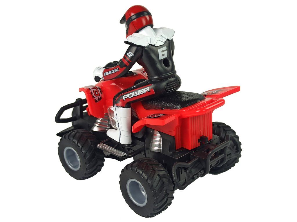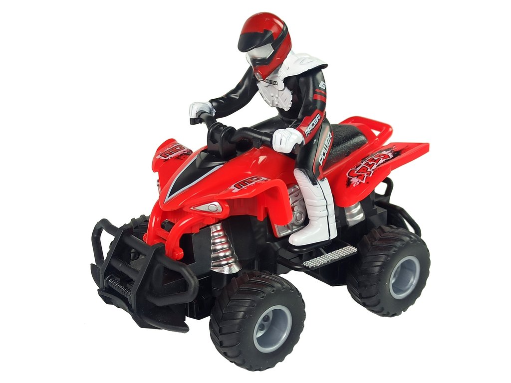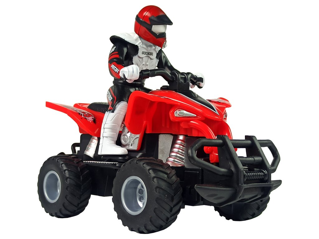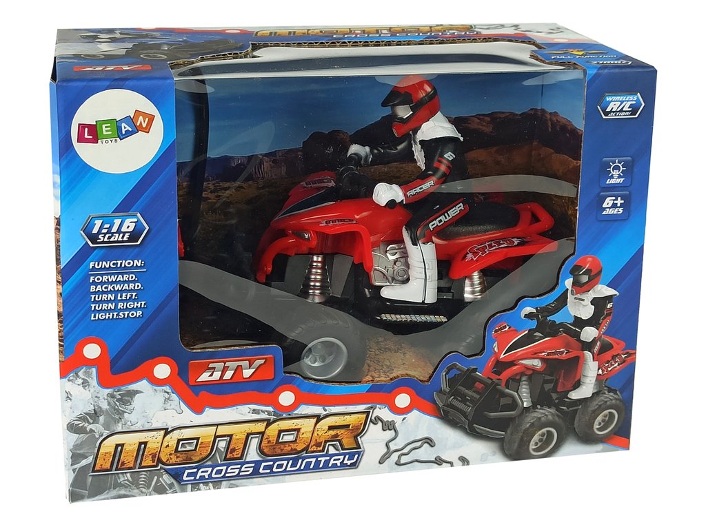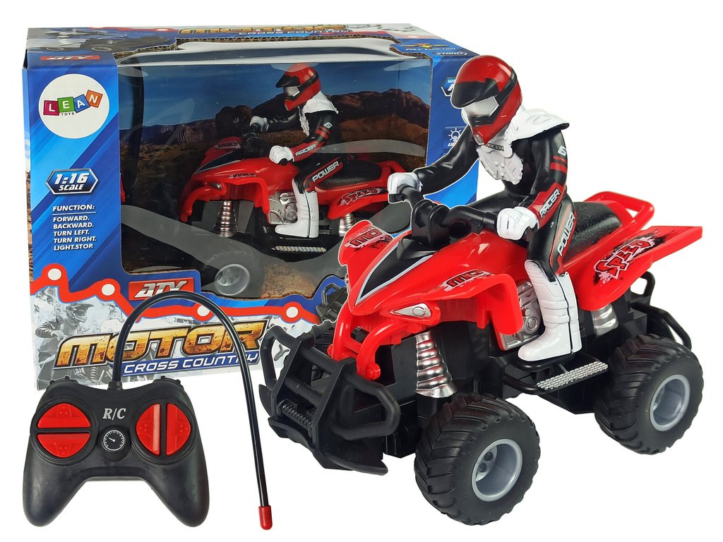 Čtyřkolka je vyrobená v měřítku 1:16, takže vypadá neuvěřitelně realisticky. Bezdrátové dálkové ovládání, které je součástí sady, pracuje na frekvenci 27 MHz. Měkká gumová kola vozidla zajišťují, že má auto dostatečnou přilnavost na různých površích.