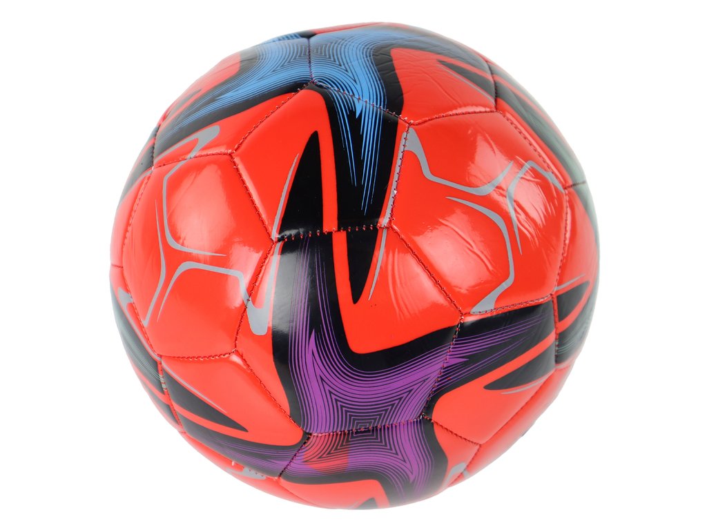 Fotbalový míč má průměr 24 cm / velikost 5, což je standardní velikost používaná ve většině profesionálních zápasů a soutěží. Jeho primární barvou je živá červená, což mu dodává výrazný a snadno rozpoznatelný vzhled na hřišti.