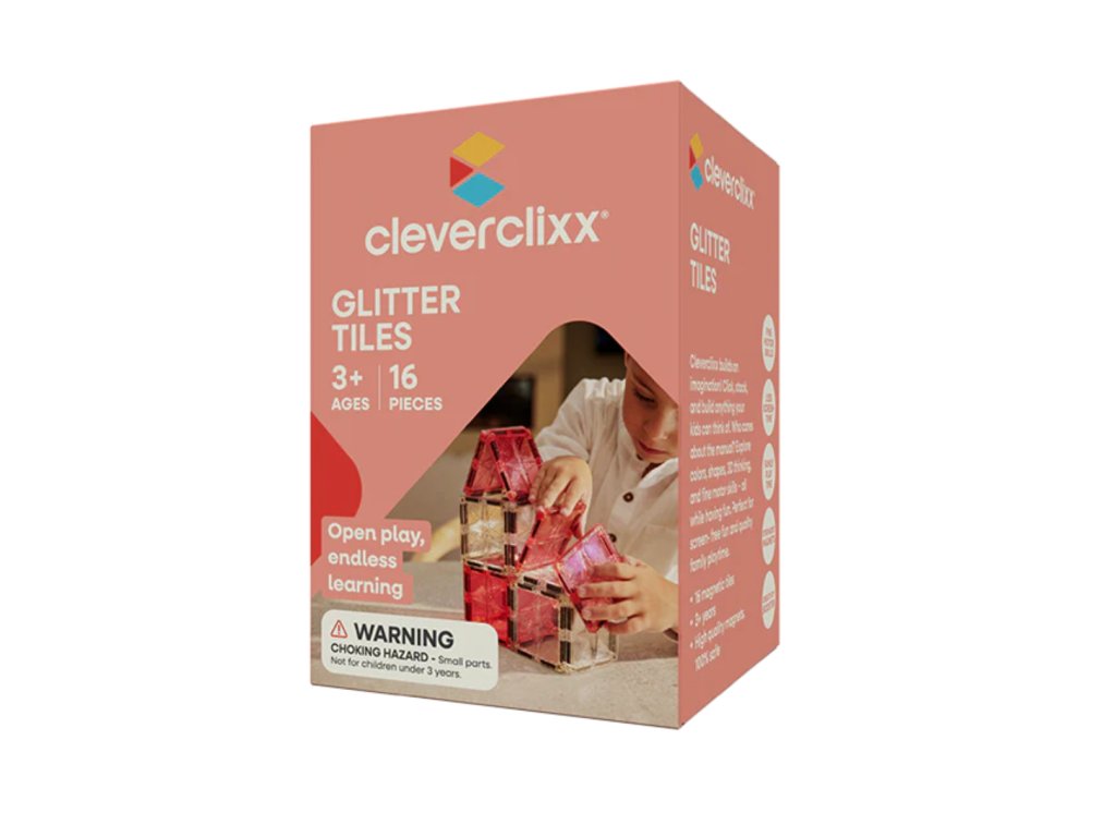 Cleverclixx Tiles Magnetická stavebnice třpytivé díly 16 ks
