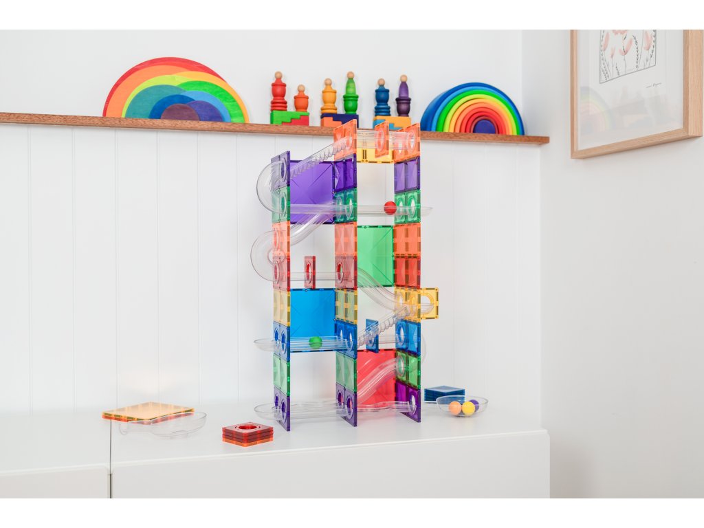 Magnetická kuličkodráha Connetix Tiles je perfektní startovací sada pro malé stavitele i pro ty, kteří chtějí rozšířit své kuličkové dráhy. Sestavujte, experimentujte a nechte děti rozvíjet svou fantazii!