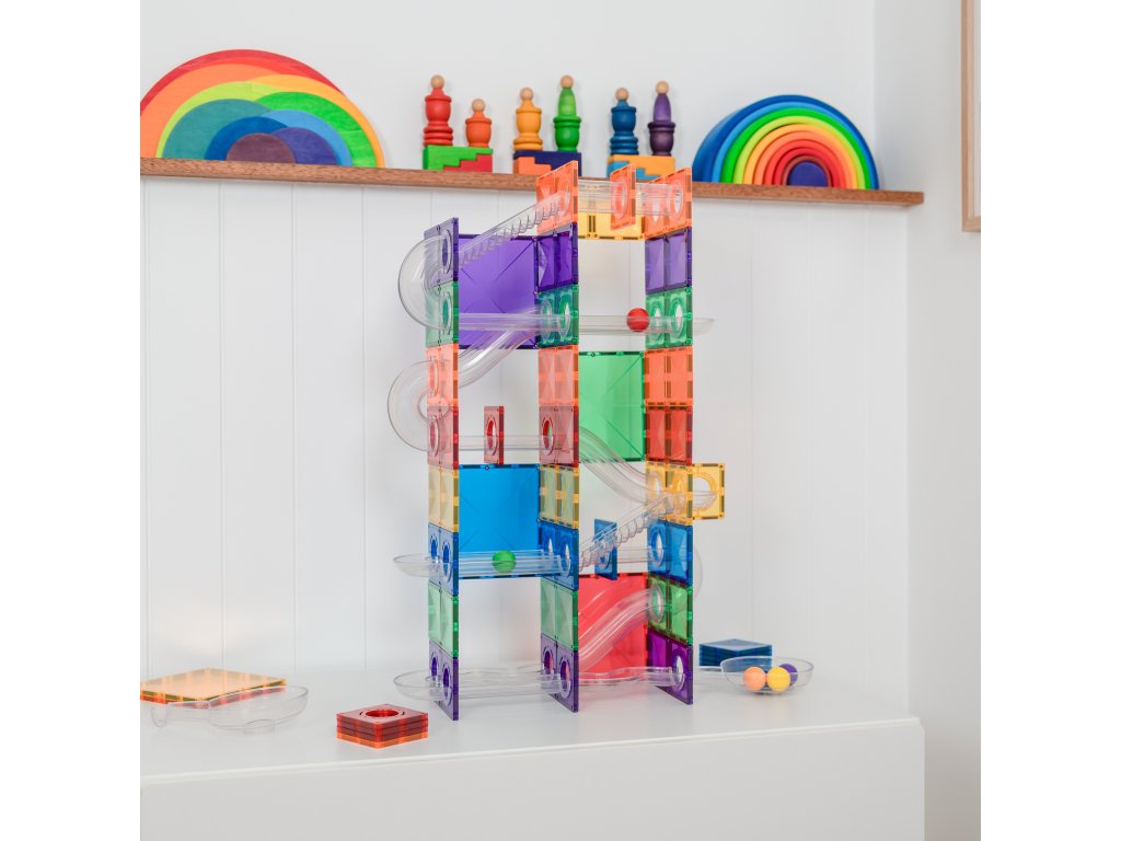 Magnetická stavebnice Connetix Tiles - Kuličkodráha Super Ball Run Pack (134 ks)