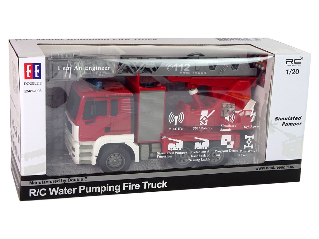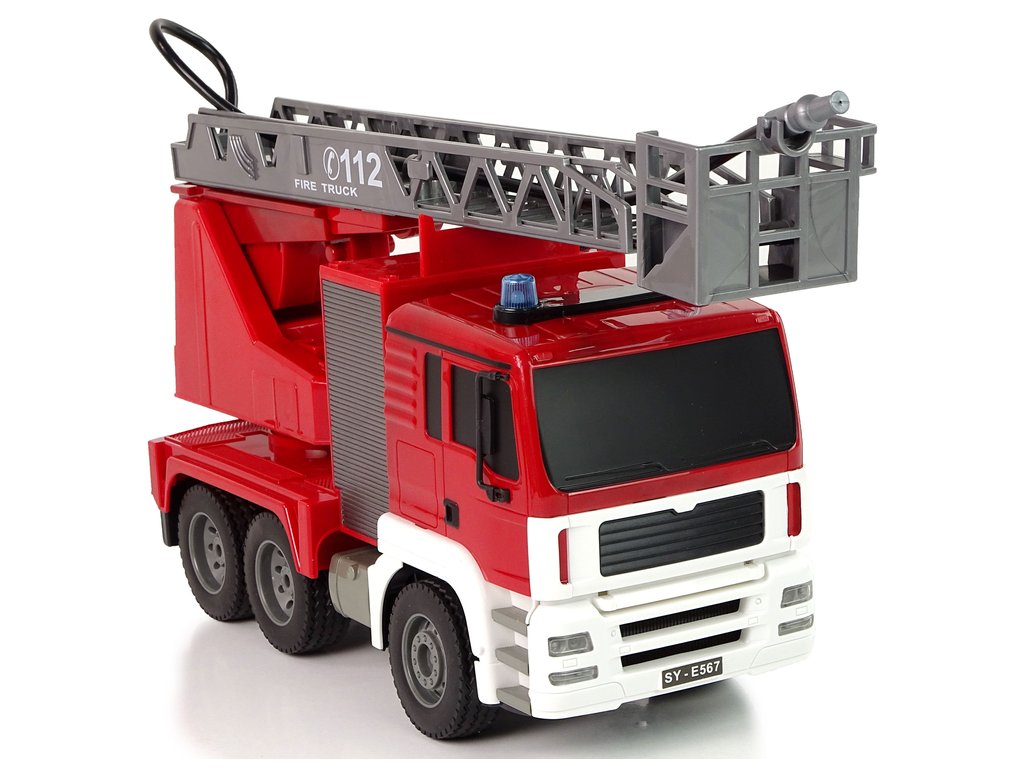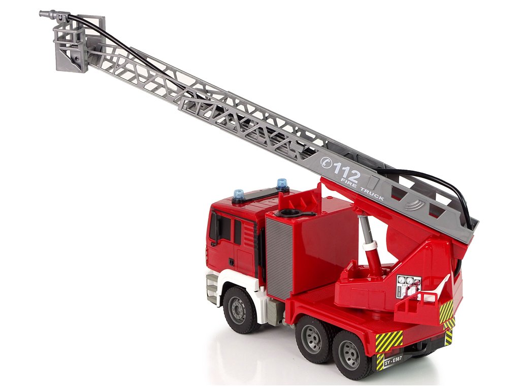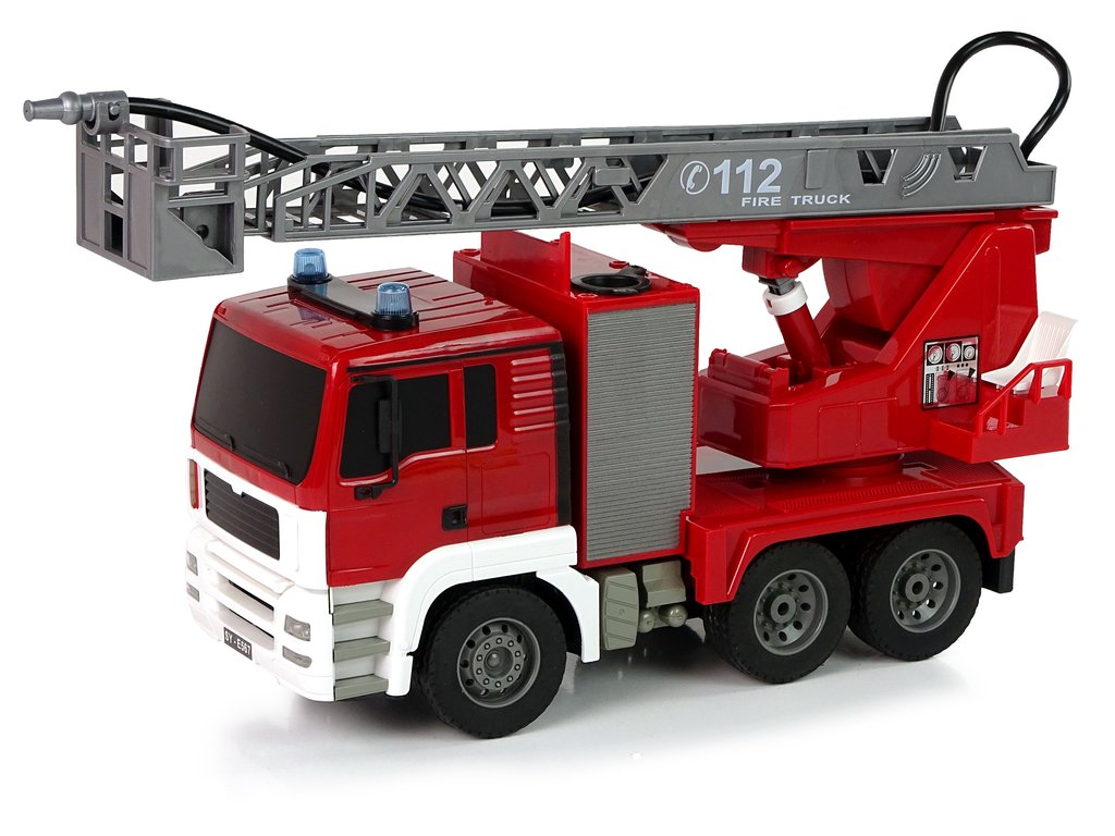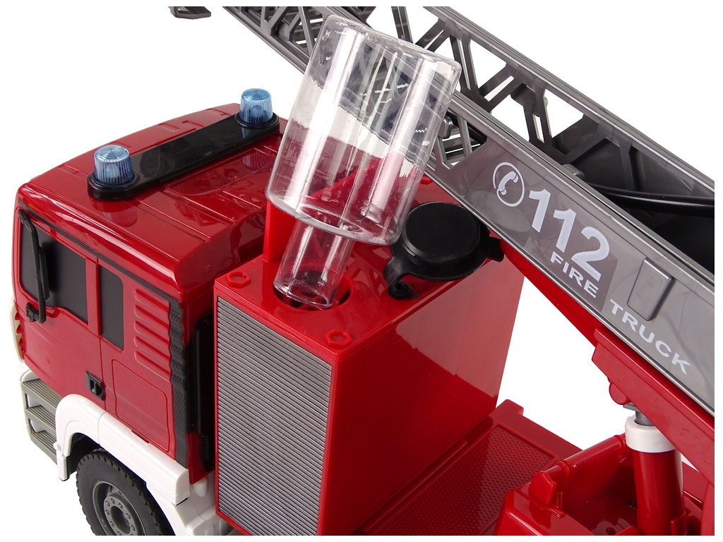 Hasičské auto na dálkové ovládání s pohyblivým žebříkem a stříkající vodou