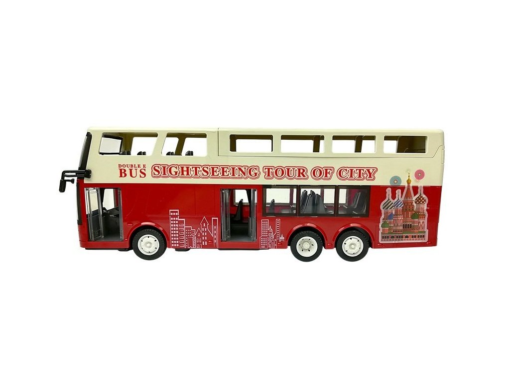 Dvoupatrový autobus jistě udělá radost každému fanouškovi těchto vozidel. Dálkové ovládání má frekvenci 2,4 GHz, s jeho pomocí jej může obsluha řídit, měnit směry vpřed/vzad a vpravo/vlevo. Autobus má zvukové a světelné efekty a výhodou je, že dveře lze otevírat pomocí ovladače. Zobrazený model je vyroben v měřítku 1:18.