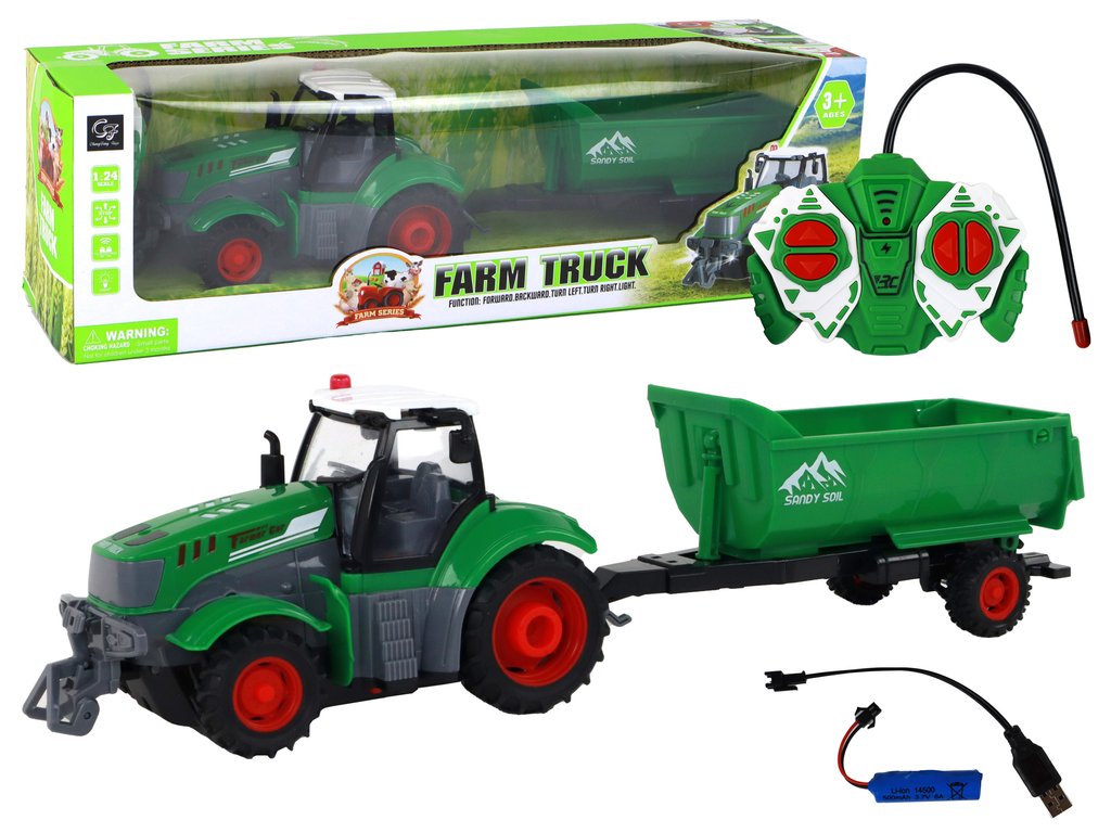 R/C Traktor s přívěsem 1:24 svetly Zelený