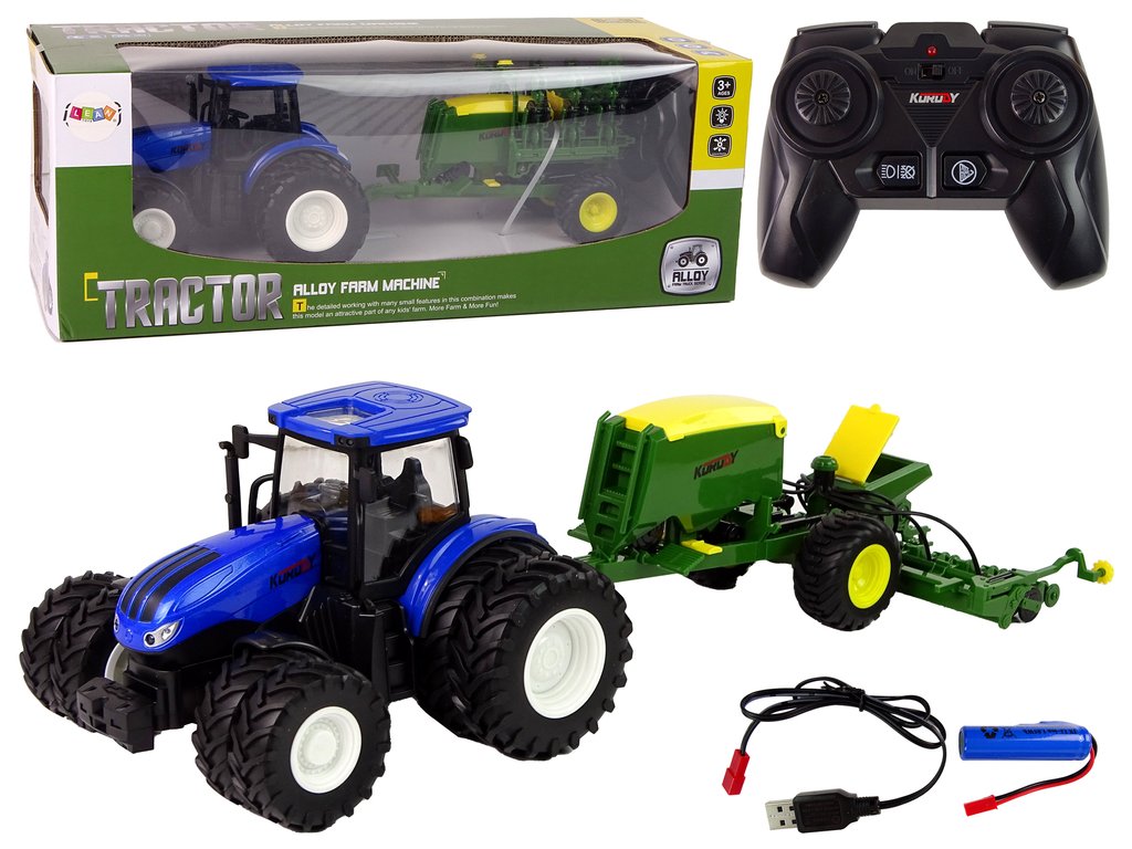 Traktor s příslušenstvím na dálkové ovládání 1:24