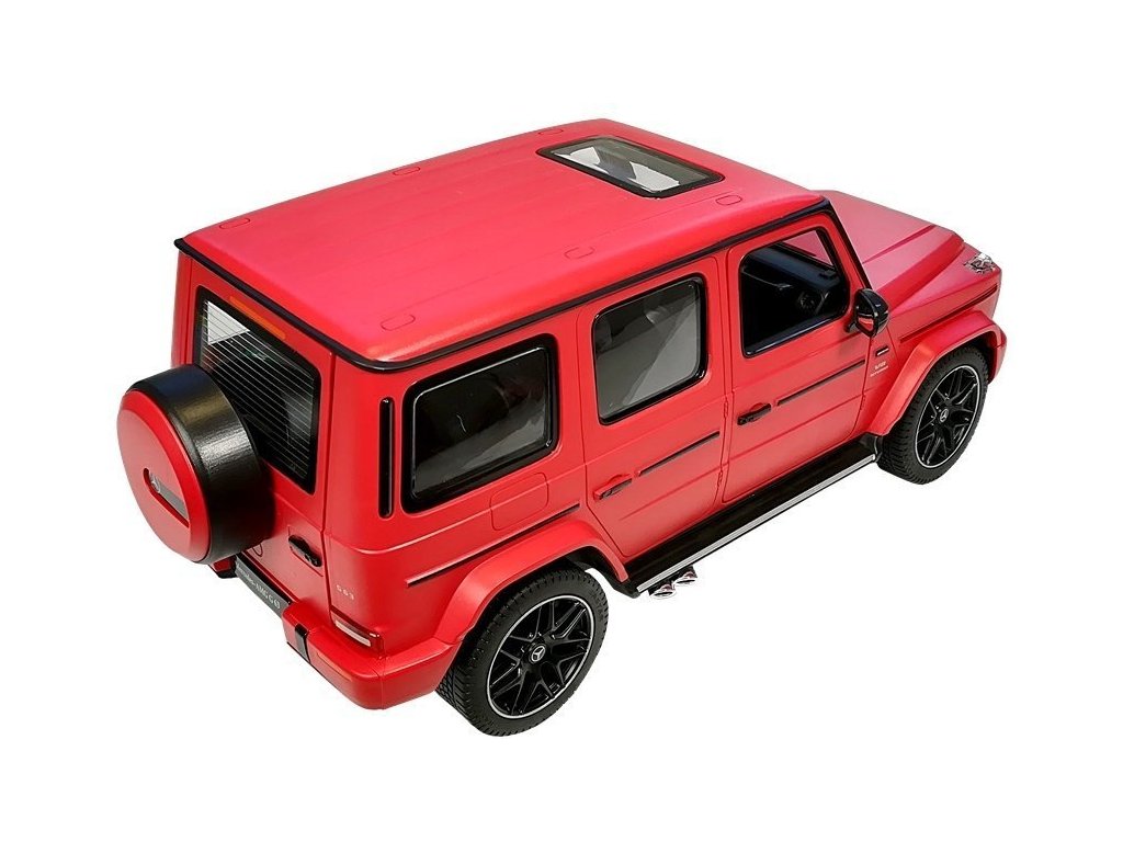 Dálkově ovládaný Mercedes G63 v červené barvě je replika skutečného vozu v měřítku 1:14. Auto se díky ovladači pohybuje vpřed, vzad, otáčí se a brzdí. Díky svému terénnímu charakteru může být použito jak doma, tak na zahradě. Vozidlo je vybaveno svítícími efekty, světla se rozsvítí, když je auto zapnuté a když jede.