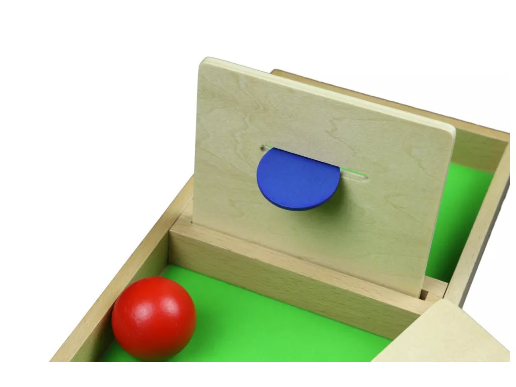 Otvorem v dřevěné vyjímatelné tabulce uprostřed tácu děti prostrkávají disk nebo míček, čímž rozvíjejí koordinaci oka a ruky a procvičují pohyb prstů a zápěstí.