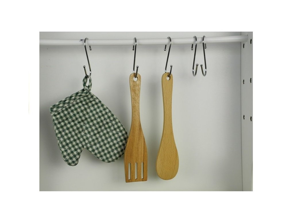 Bílo-zelená kuchyňka, která byla vyrobena z ekologického a odolného materiálu, kterým je dřevo. Jeho použití při konstrukci hračky výrazně zvyšuje nejen životnost a spolehlivost hračky, ale také pohodlí a bezpečnost při používání po dobu několika let. Začlenění této hračky do každodenní hry dítěte, pozitivně ovlivní rozvoj jeho představivosti, nezávislosti a schopnosti bezpečně si hrát s kuchyňským náčiním. Dítě poznává a učí se základní domácí práce. Hračka určená pro děti od 3 let.