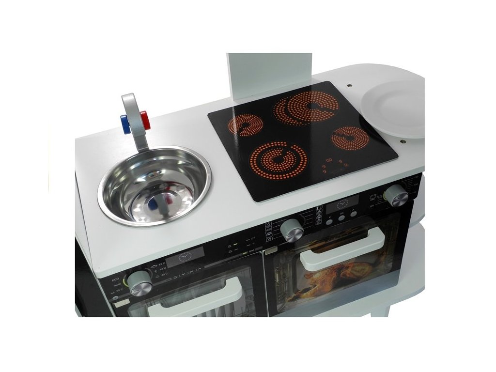 Černá dřevěná kuchyňka byla navržena pro všechny děti starší 3 let. Všechny rozměry byly přizpůsobeny průměrné výšce malých dětí, takže je zde velmi pohodlné použití. Materiál použitý pro výrobu hračky je zárukou vysoké kvality a trvanlivosti, což dále zdůrazňuje označení CE a zaručuje shodu s požadavky platných směrnic Evropské unie. Černá dětská kuchyňka je zabalena v originální kartonové krabici, uvnitř které je návod pro snadnou montáž.