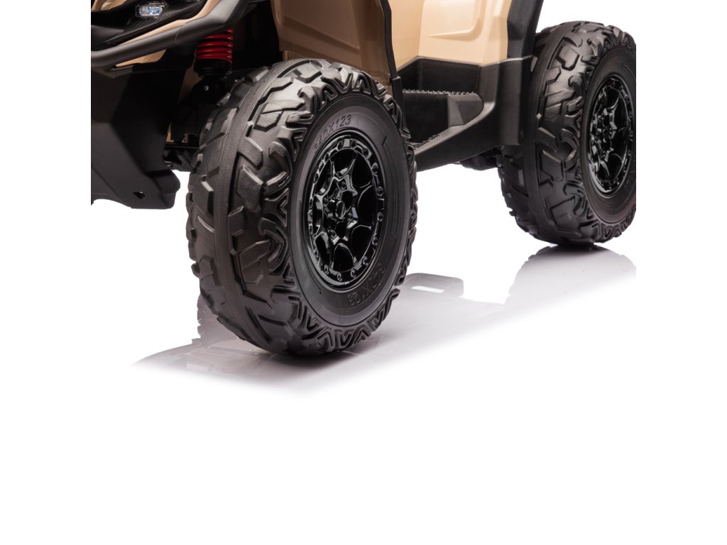 Dětská elektrická čtyřkolka je vybavena čtyřmi motory o celkovém výkonu 800W a širokými pěnovými koly EVA. Čtyřkolka hravě zvládne různé typy terénu, nezpevněný povrch i kopce.