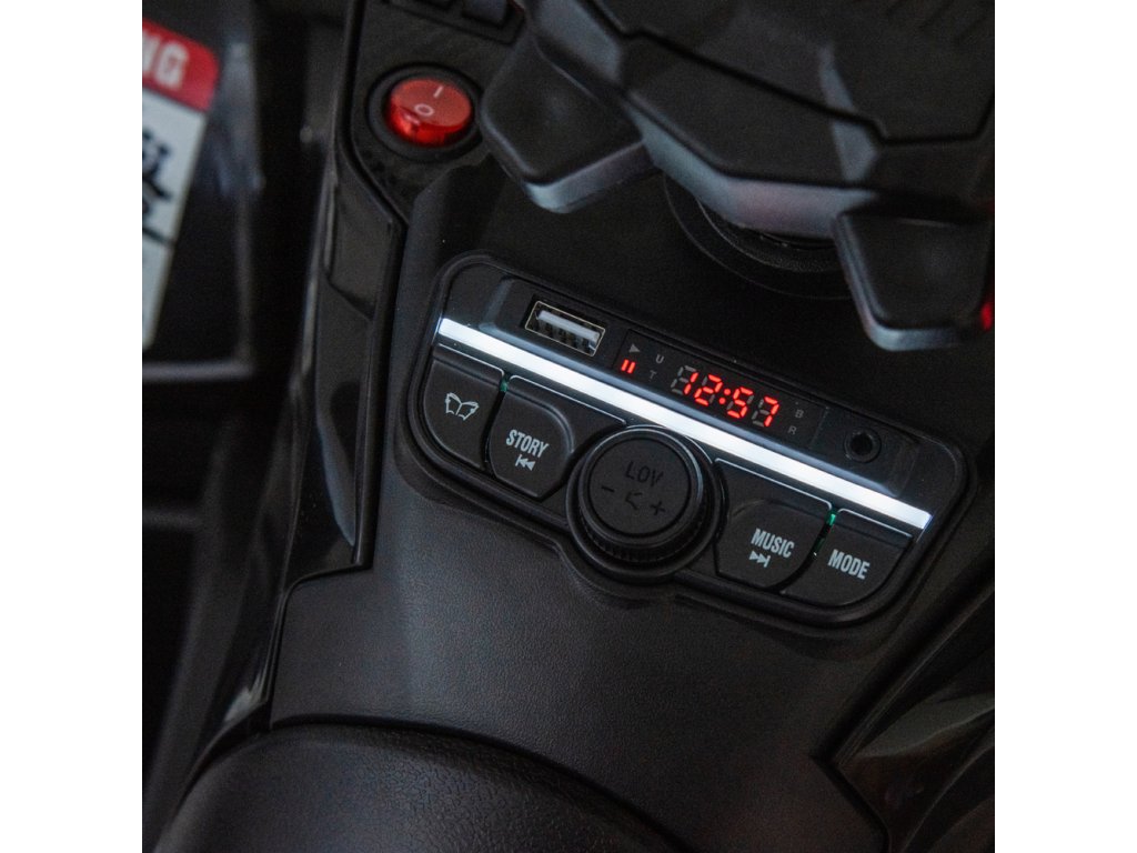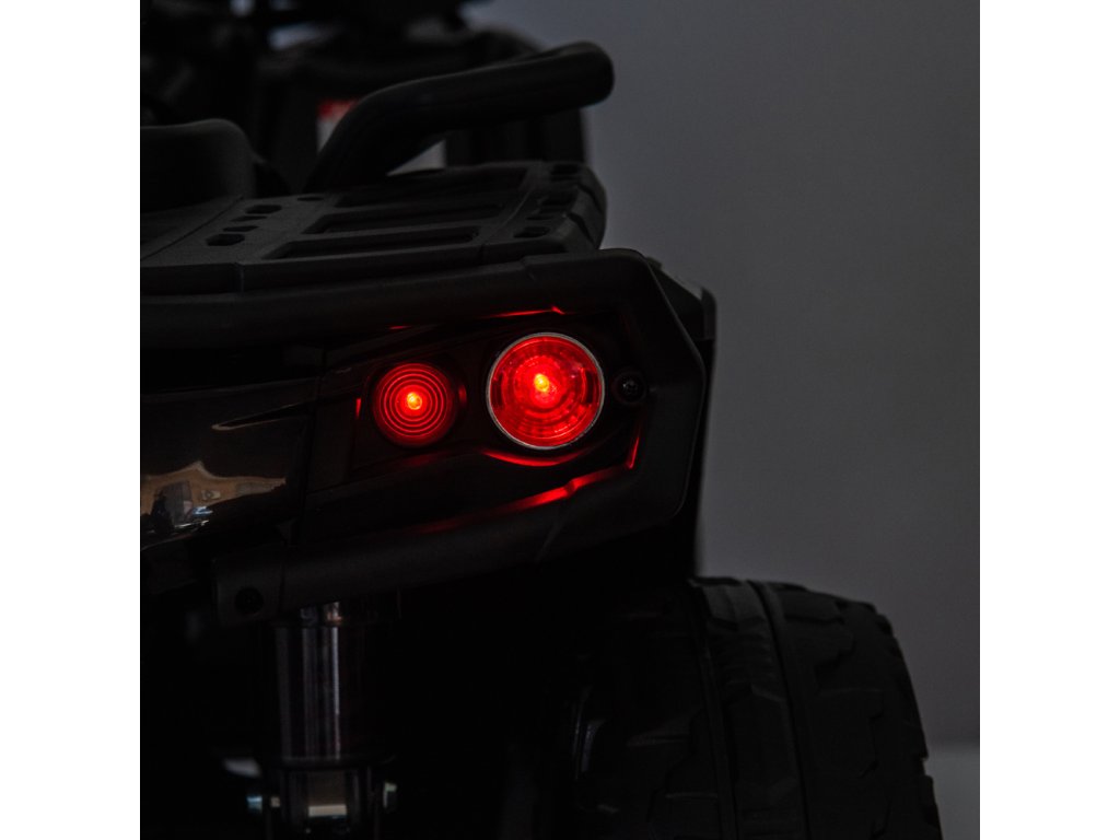 Mezi vybavení patří hudební panel se vstupy USB, MP3, Rádio, AUX, Bluetooth a předem nahranými melodiemi. Čtyřkolka ATV má přední i zadní světla, umožňuje jízdu ve všech směrech a její nosnost je do 50 kg.