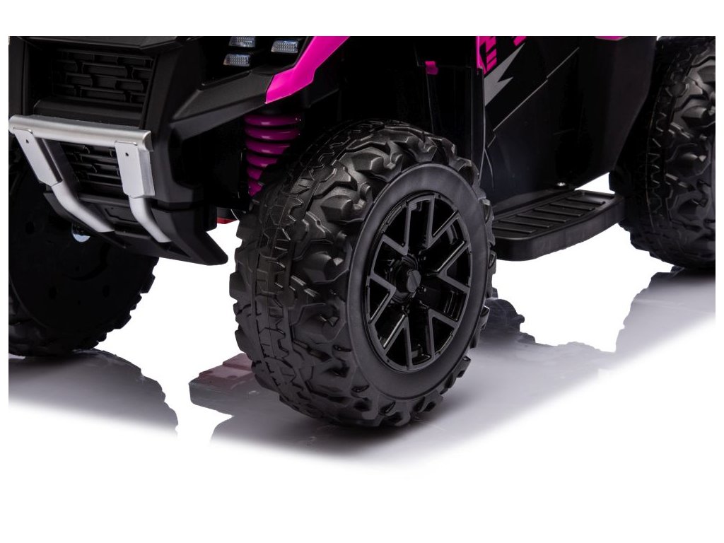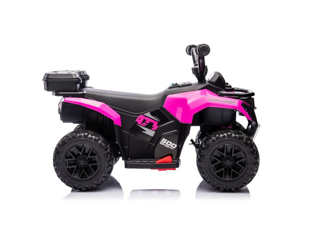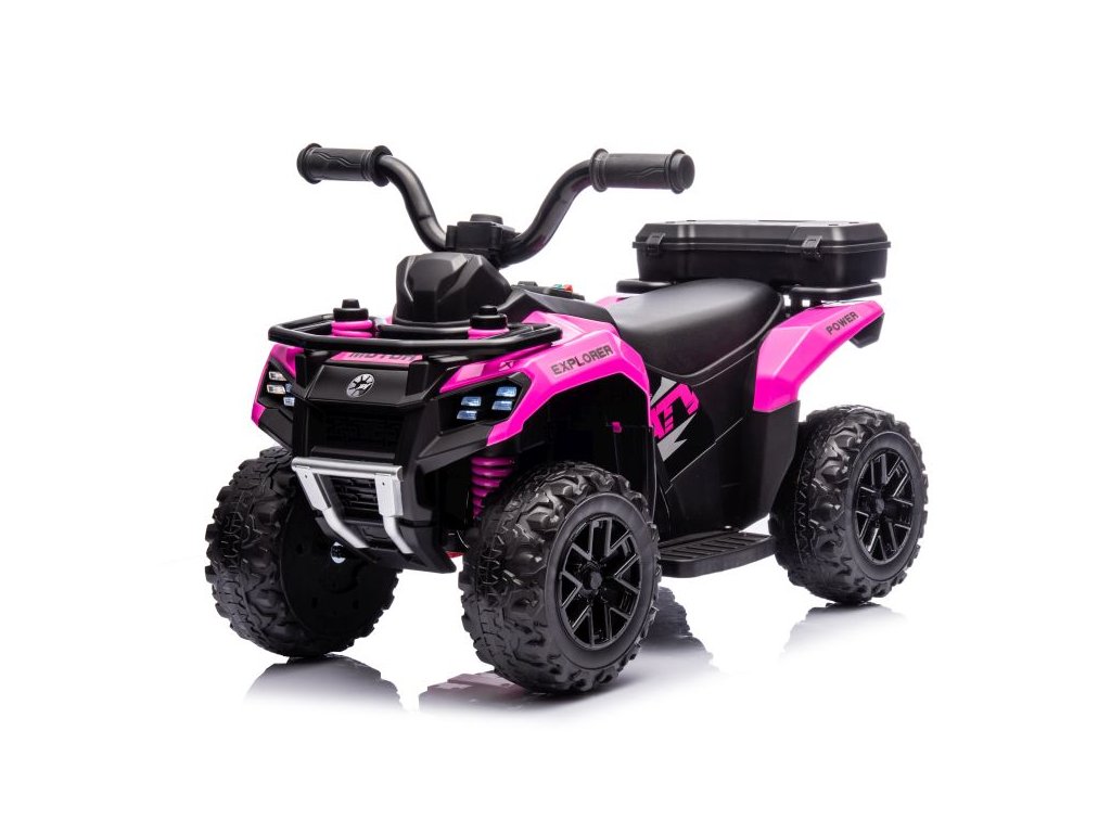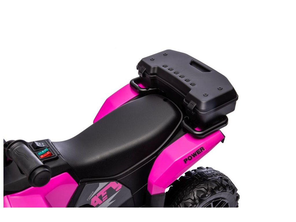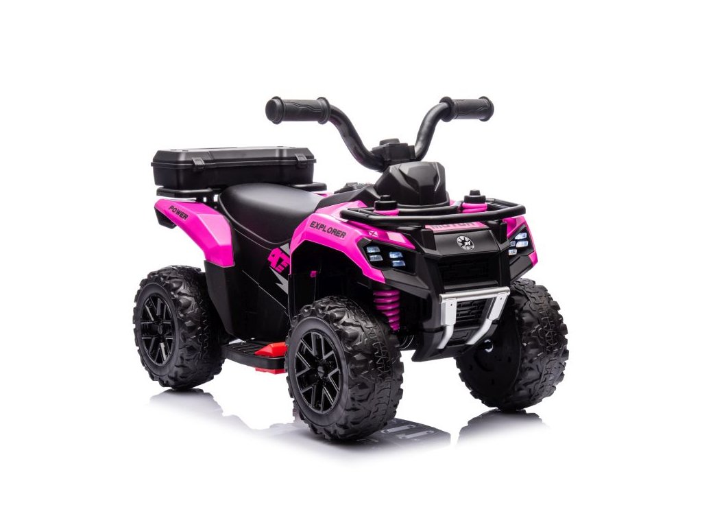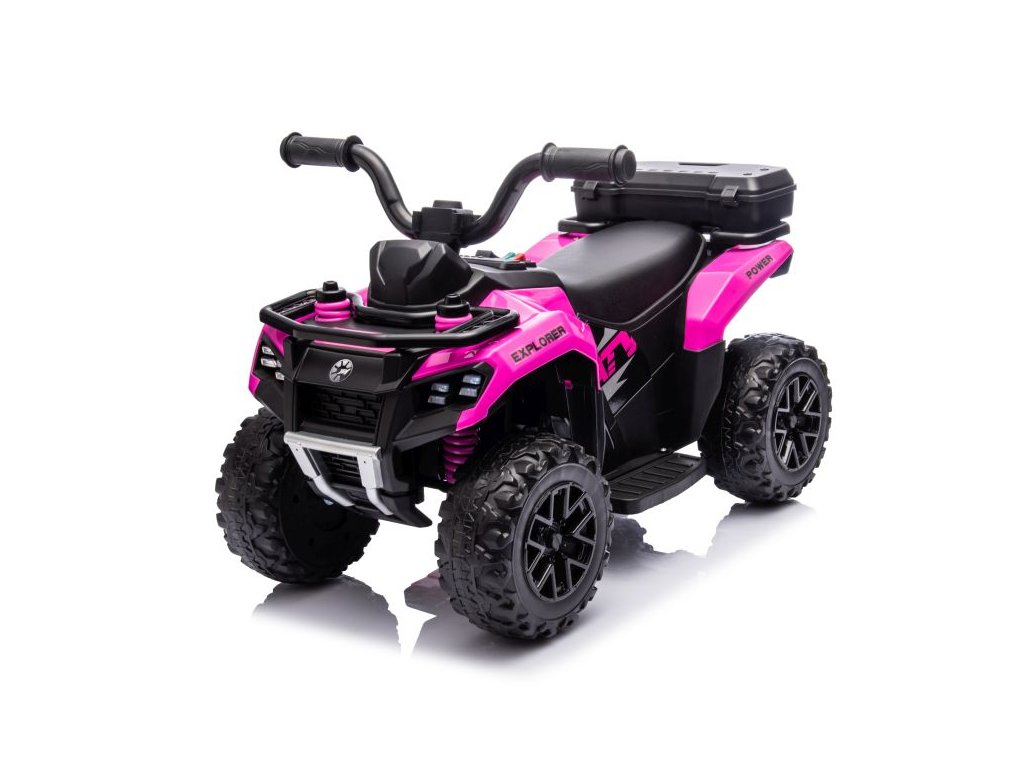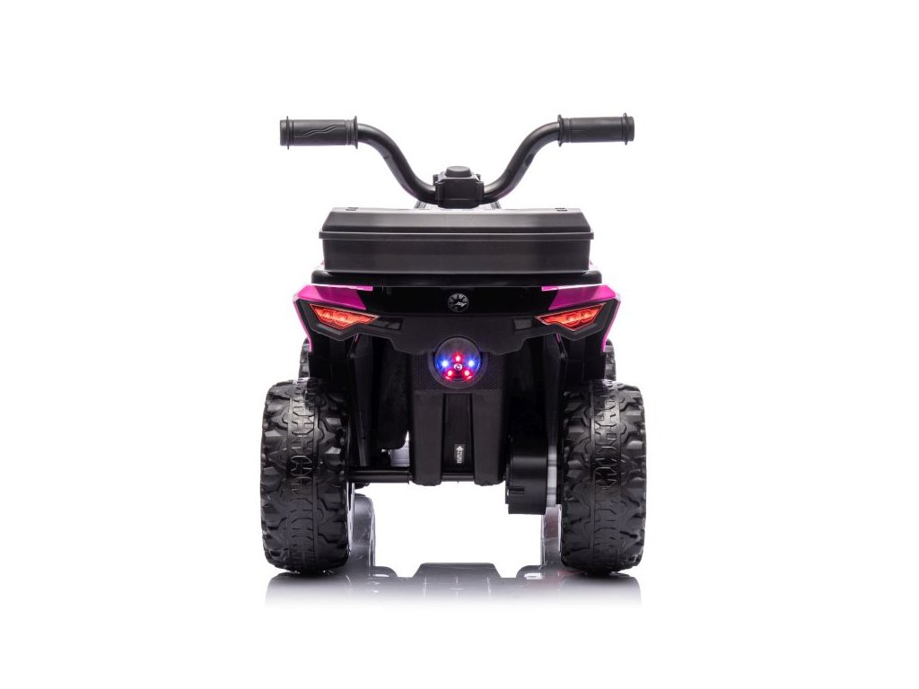 Dětská elektrická čtyřkolka je vybavena motorem o výkonu 35W a širokými pěnovými koly EVA. Mezi vybavení patří hudební panel. Čtyřkolka má přední světla a její nosnost je do 20 kg.