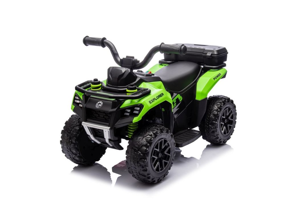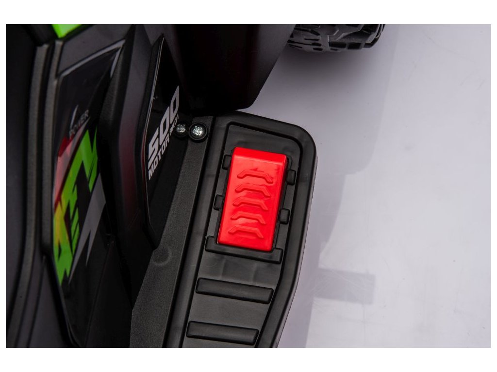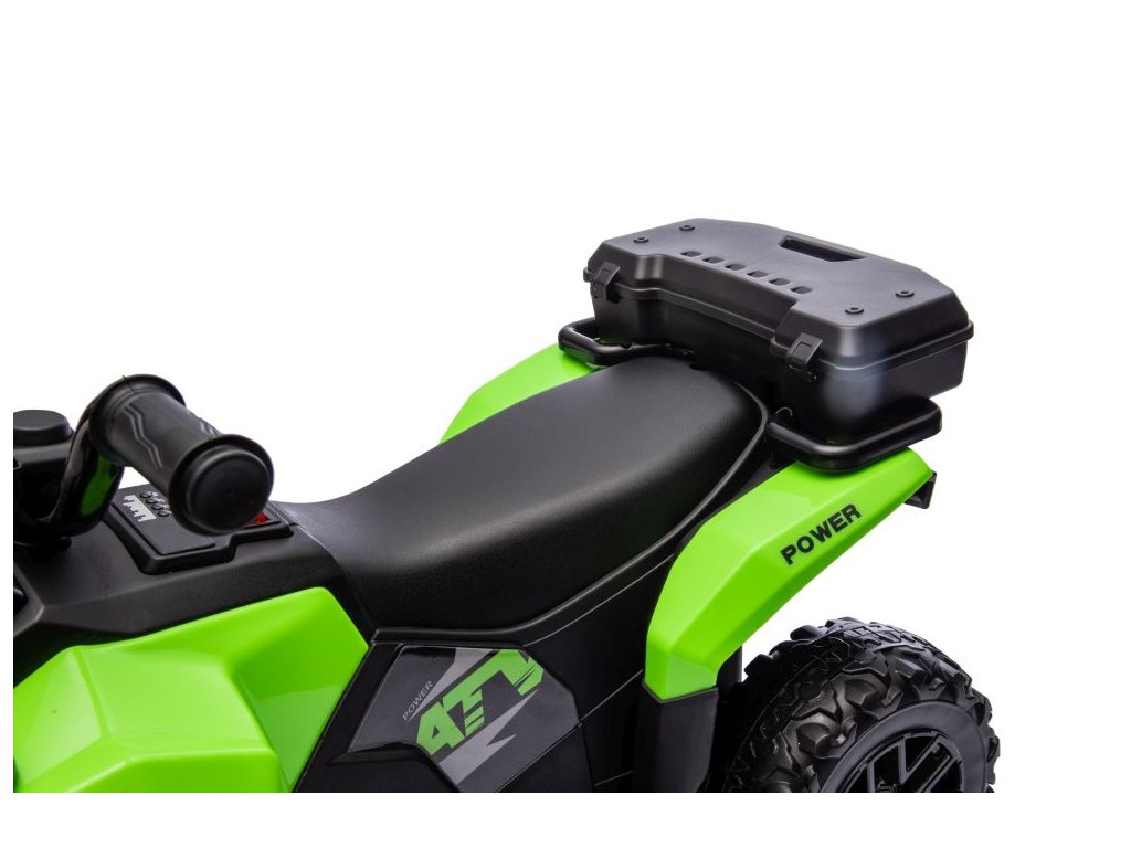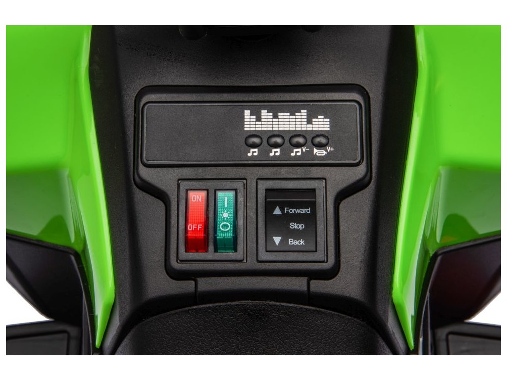 Dětská elektrická čtyřkolka je vybavena motorem o výkonu 35W a širokými pěnovými koly EVA. Mezi vybavení patří hudební panel. Čtyřkolka má přední světla a její nosnost je do 20 kg.