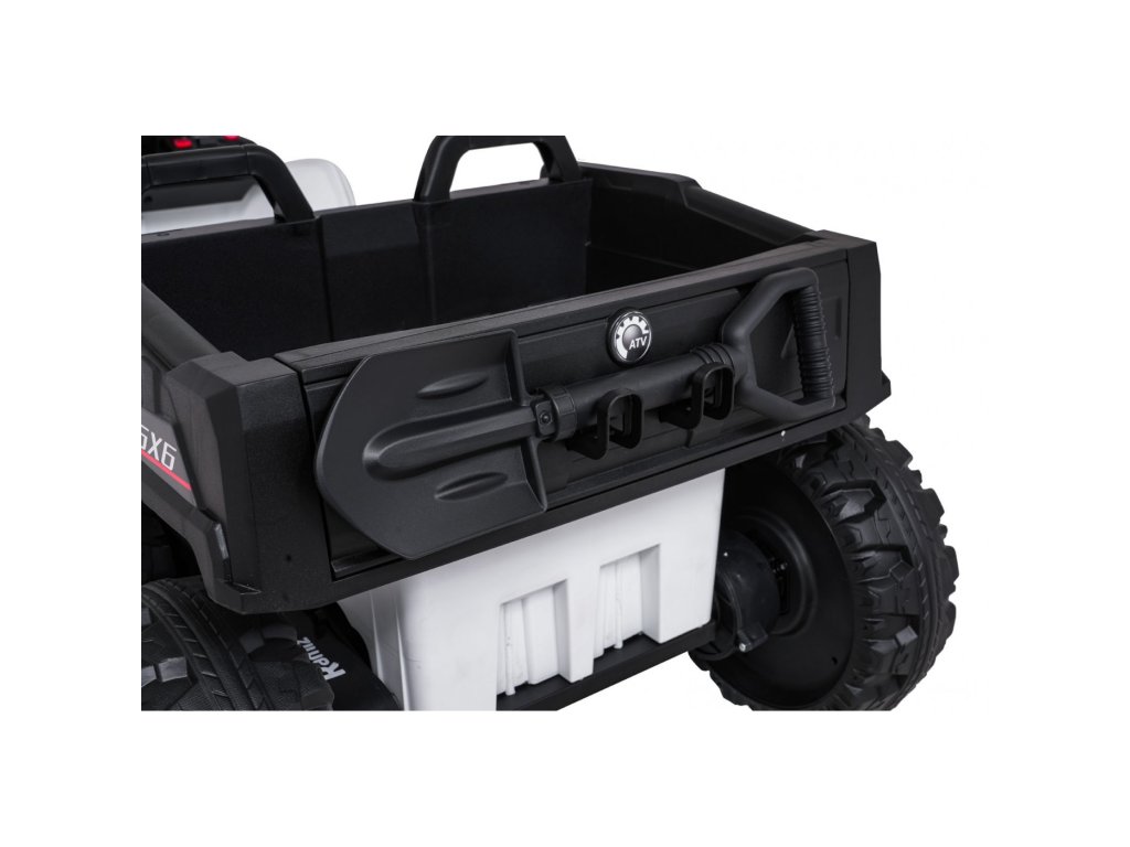 Součástí výbavy jsou také přední LED světla, otevíratelné dveře a prostorný kufr o rozměrech 42 x 28 x 10 cm. Hudební panel nabízí MP3 přehrávač, Bluetooth, USB vstup a tlačítka s melodiemi a klaksonem přímo na volantu. Indikátor nabití baterie umožní mít neustále přehled o stavu vozítka.