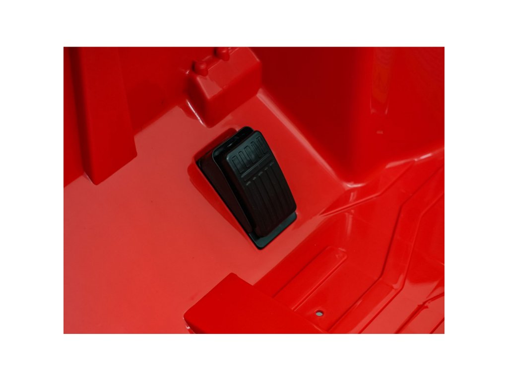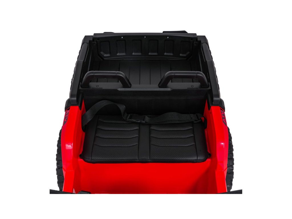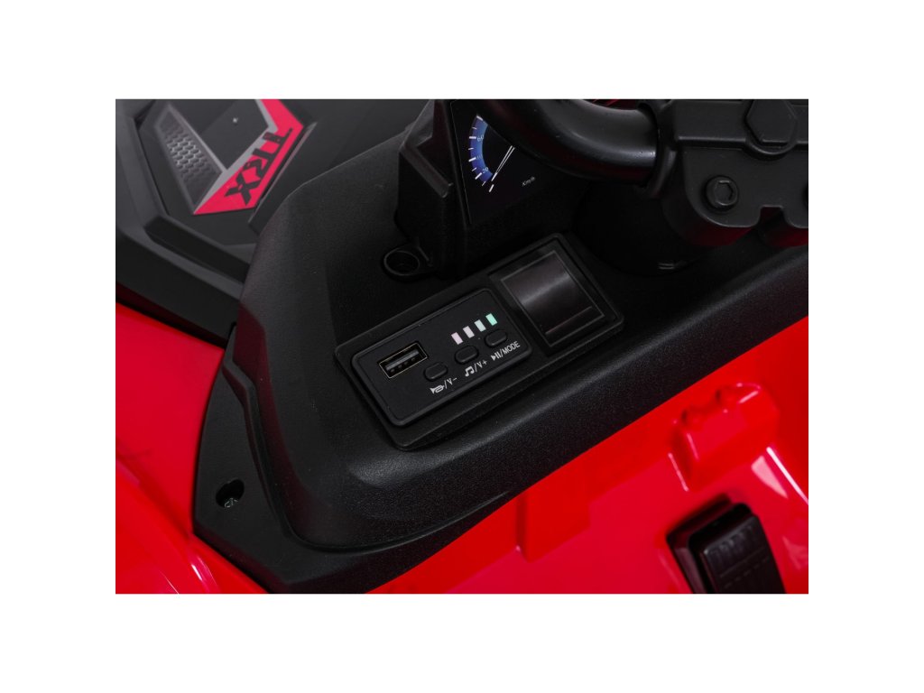 Součástí výbavy jsou také přední LED světla, otevíratelné dveře a prostorný kufr o rozměrech 42 x 28 x 10 cm. Hudební panel nabízí MP3 přehrávač, Bluetooth, USB vstup a tlačítka s melodiemi a klaksonem přímo na volantu. Indikátor nabití baterie umožní mít neustále přehled o stavu vozítka.