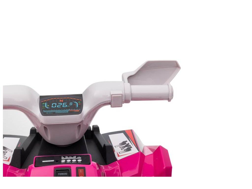 Dětská elektrická čtyřkolka má motor o výkonu 45W a široká plastová kola. Čtyřkolka je určená pro jízdu na trávníku nebo asfaltu a její nosnost je do 30 kg.