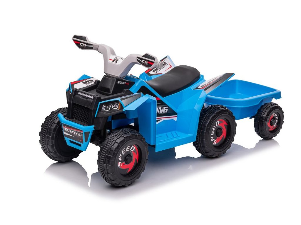 Dětská elektrická čtyřkolka s přívěsem modrá