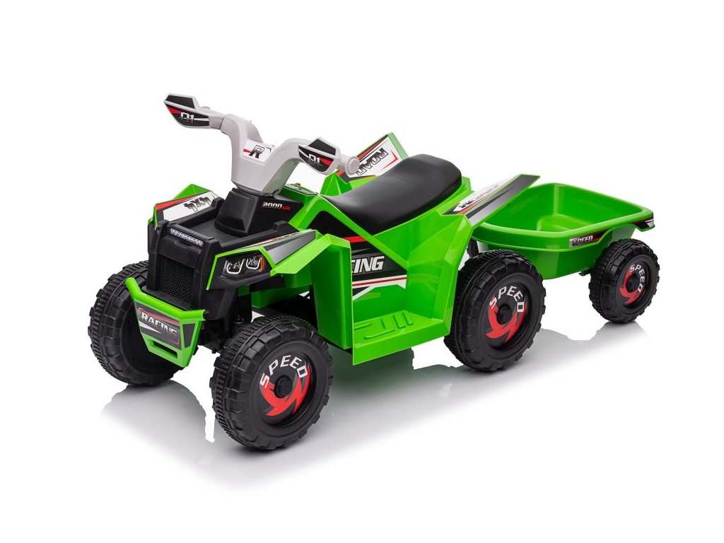 Dětská elektrická čtyřkolka s přívěsem zelená