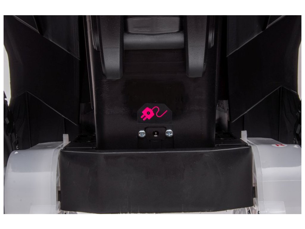Čtyřkolka má pozvolný rozjezd, do terénu vyrazíte rychlostí 3-3,5 km/h, avšak do jízdy mohou kdykoliv zasáhnout rodiče pomocí dálkového ovladače. Pohodlí zajistí sedadlo z plastu a plastová kola.