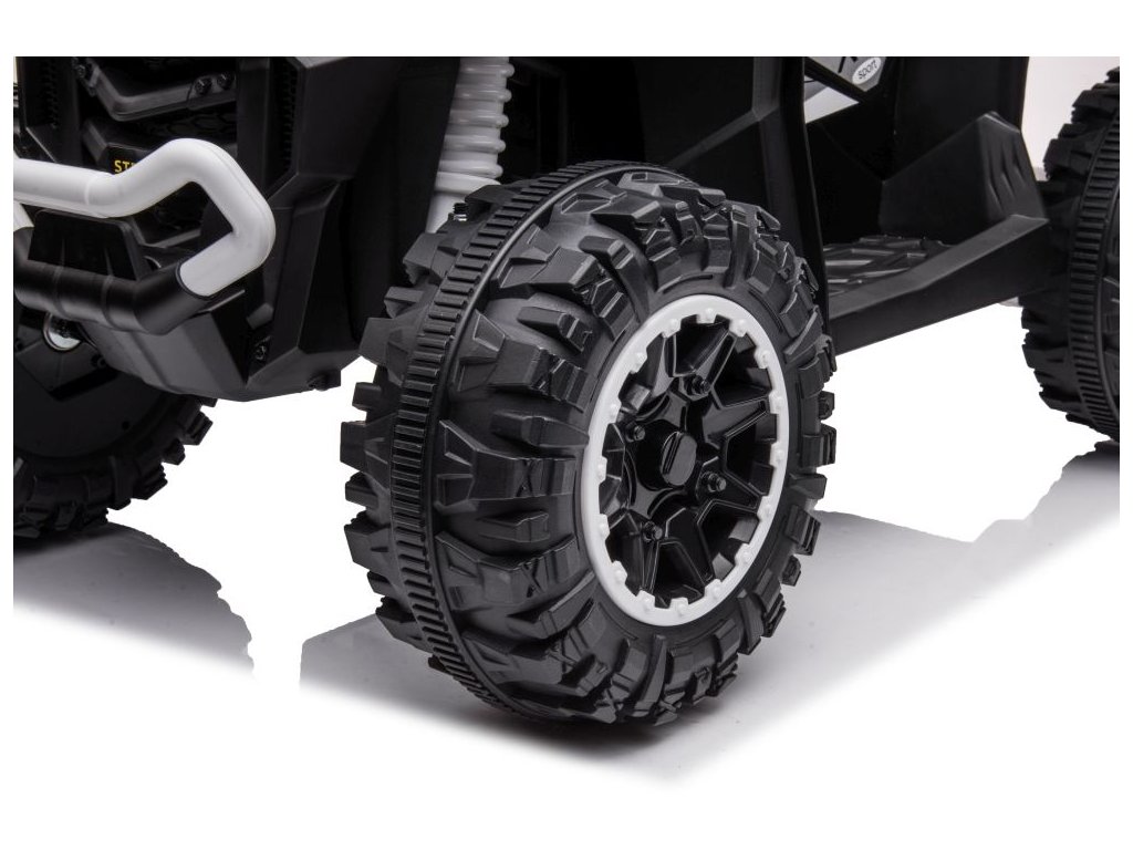 Dětská elektrická čtyřkolka XC-sport je skvělým řešením i pro náročnější řidiče. Je vybavena dálkovým ovladačem s bezpečnostním tlačítkem Stop, které ihned zastaví vozidlo a vypne všechny jeho funkce. Při startování uslyšíte zvuky motoru a jízdu si můžete zpříjemnit hudbou, kterou lze spustit pomocí bohatě vybaveného hudebního panelu. Čtyřkolka má dva motory s výkonem 45W a baterií s kapacitou 12V 7Ah.