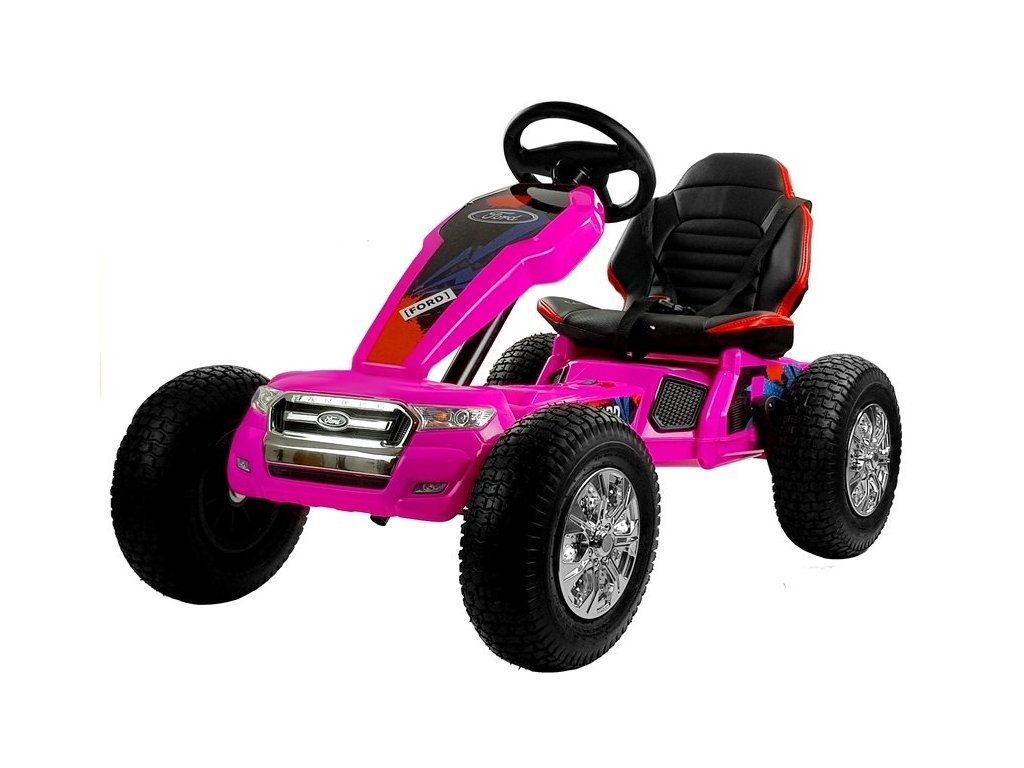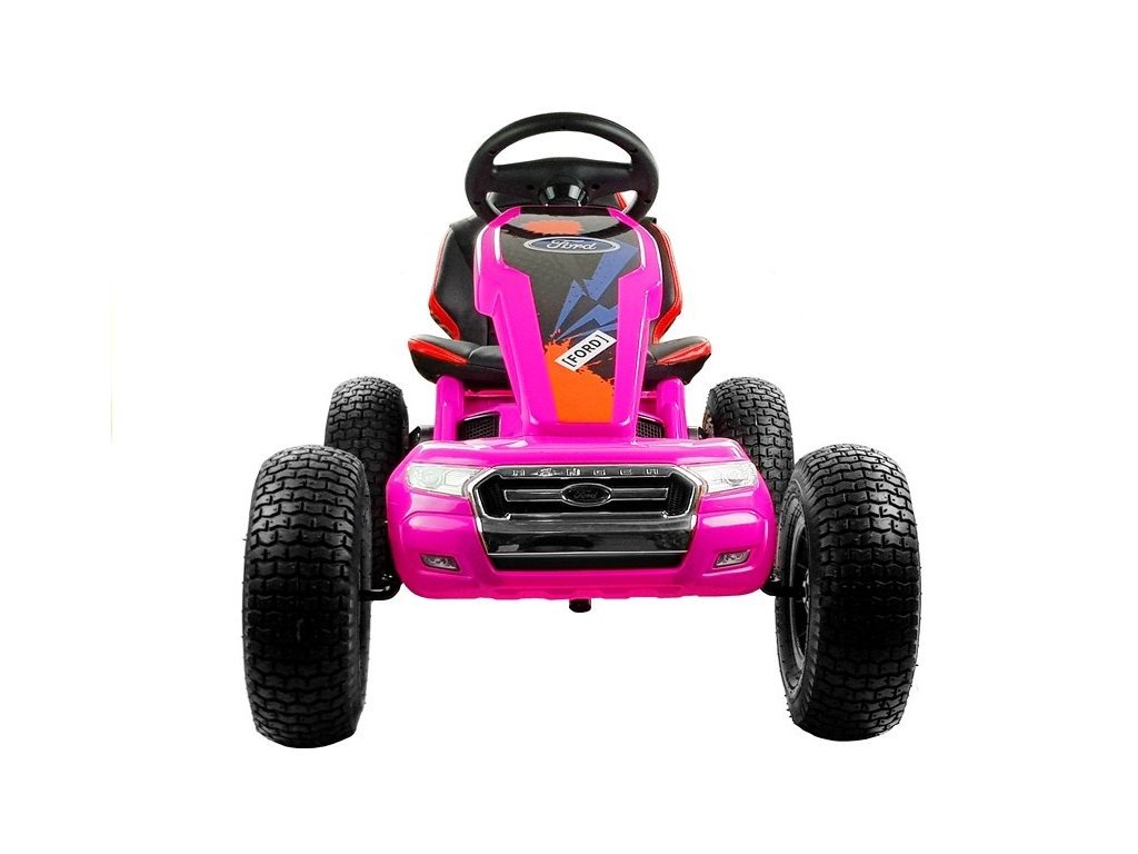 Sportovní motokáry s licencí Ford poskytnou spoustu zábavy pro každé dítě. Motokára postavená na pevném kovovém rámu s plastovými kryty a povrchovou úpravou umožní pohodlné cestování pro každé dítě. Kola vozidla jsou vyrobena z měkkého plastu EVA, který zajistí pohodlnou jízdu na nerovném povrchu a tvrdém podkladu. Profilované sportovní sedadlo má 3 bodové bezpečnostní pásy. Ford má možnost jízdy vpřed a vzad a otáčení doprava nebo doleva. Na bezpečí dítěte dohlíží automatická brzda, která se spustí při uvolnění plynového pedálu. Podle zatížení motokára vydrží 1-2 hodiny. Maximální rychlost je 5 km/h