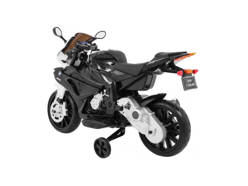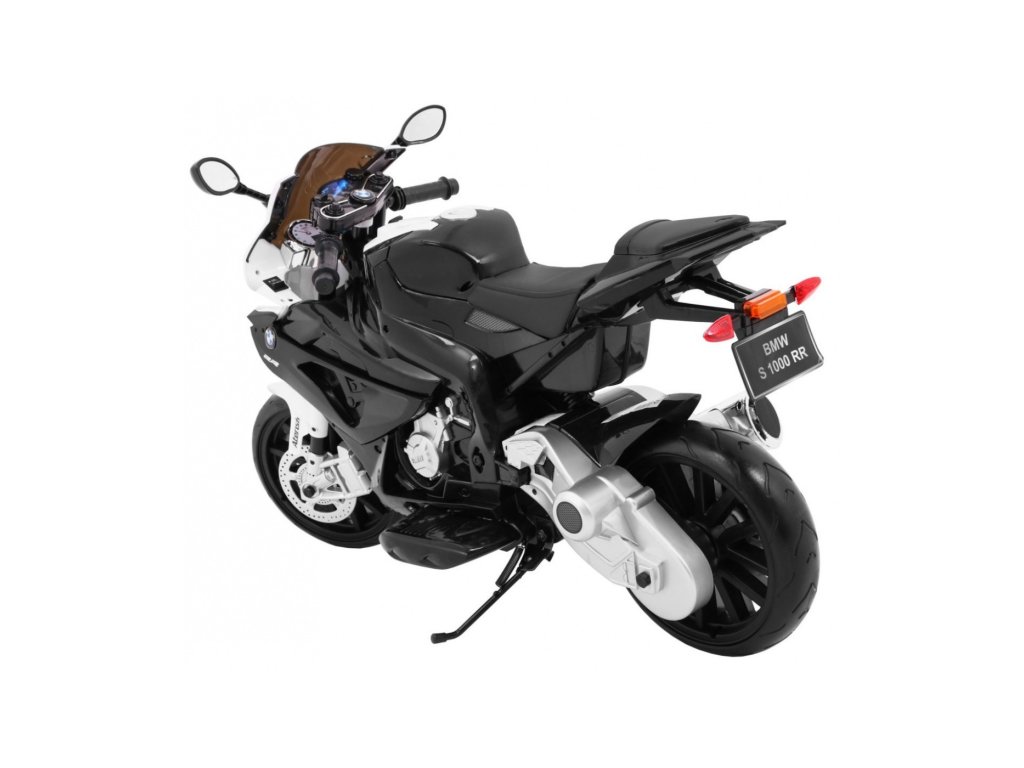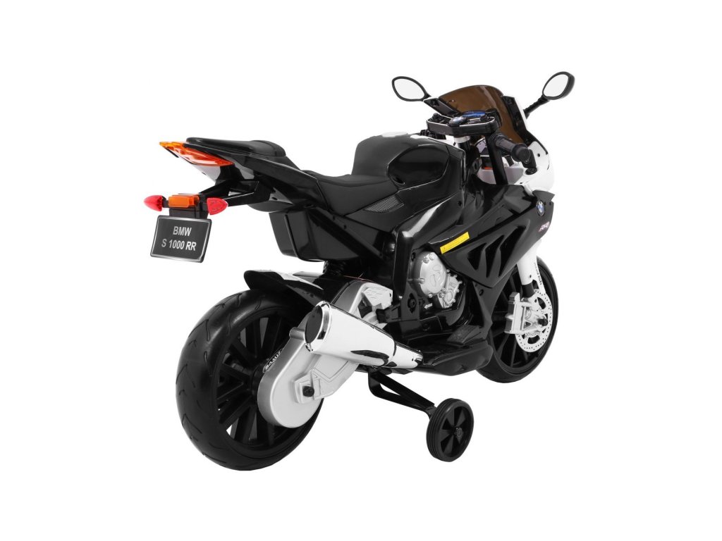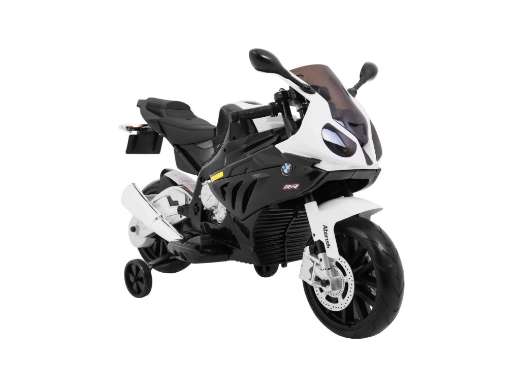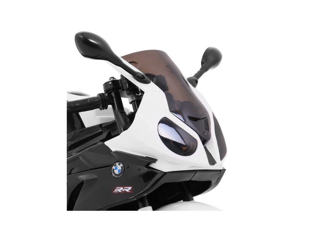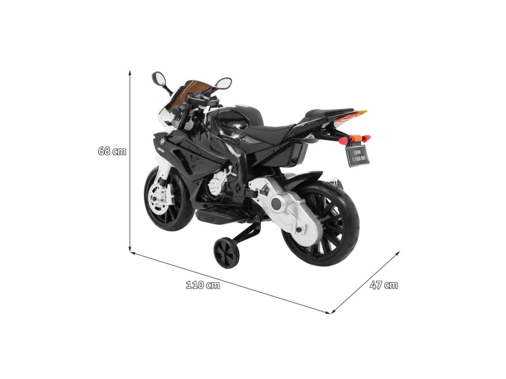 Licencovaná elektrická motorka BMW S 1000 RR pro děti je absolutní jedničkou dětských sportovních motorek. Tato motorka se může pyšnit realistickými detaily a nosnou kovovou konstrukcí. Kola jsou pěnová EVA, takže motorka nevydává hluk při jízdě. Na bezpečí dítěte dohlíží automatická brzda, která se aktivuje při uvolnění plynového pedálu. Dále jsou součástí i boční odnímatelná kolečka. Motorka je vybavena dvěma výkonnými elektrickými motory, díky tomu získává oboustranný náhon zadního kola. Pocitu reálnosti dodává tlačítko s klaksonem, LED světla, imitace tachometru, zrcátka, startovací klíč. Součástí balení je i baterie a nabíječka. Z důvodu rozměrného zboží je motorka dodávána v rozloženém stavu. Sestavení motorky není, ale vůbec nic obtížného.