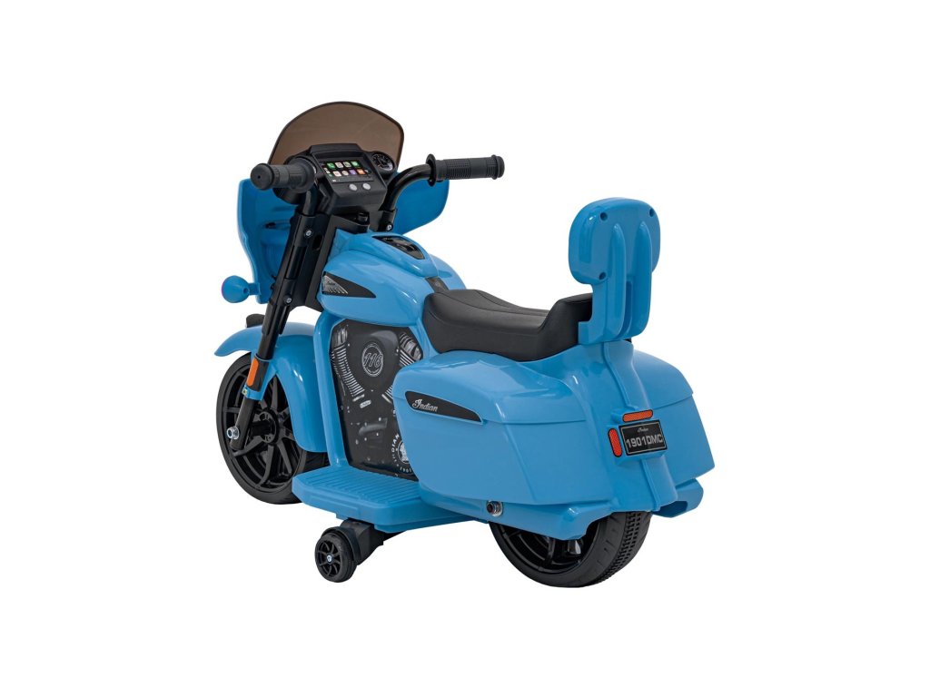 Dětská elektrická motorka Chopper INDIAN je skvělým doplňkem pro rodiny s dětmi na procházku nebo posezení na zahradě. Díky jízdě na dětské motorce dítě rozvíjí své řidičské schopnosti a také svou rovnováhu. Motorka jezdí jen dopředu a je vybavena sedadlem, které dbá na pohodlí dítěte. Dětská motorka má také zabudované světelné efekty a díky stylovému designu dítě nikdo nepřehlédne. O to, že se Vám dítě ztratí z dohledu se bát nemusíte.