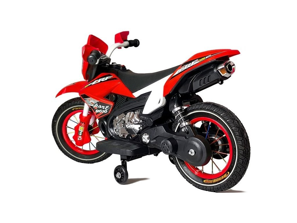 Elektrická motorka pro malé závodníky je vyrobena z kvalitního tvrdého plastu. Dětská elektrická motorka pomáhá dětem v rozvoji řidičských schopností a rovnováhy. Je to výborný doplněk na procházky s rodinou anebo trávení času na zahradě. Elektrická motorka je vybavená předními LED světly. Motorka má rychlost od 3 do 5 km/h a vydrží v akci 1 hodinu. Dětská elektrická motorka dokáže jezdit ve dvou směrech, a to dopředu a dozadu. Na bezpečí dítěte dohlíží automatická brzda, která se aktivuje po uvolnění plynového pedálu.