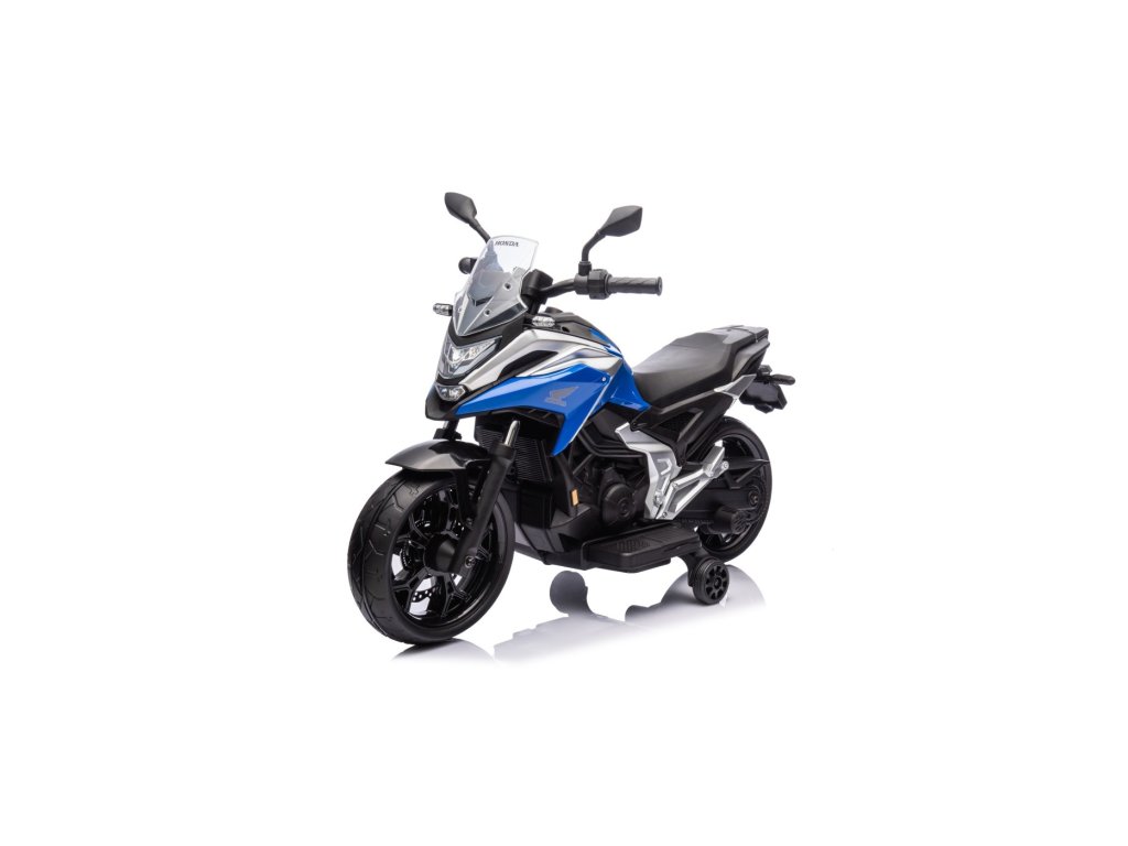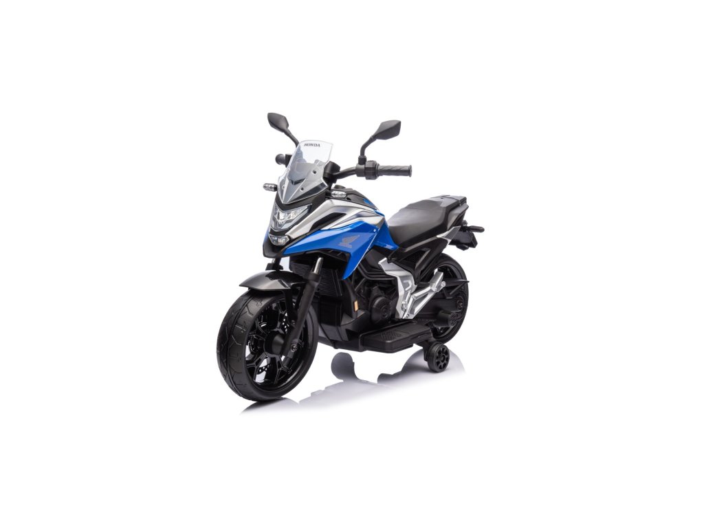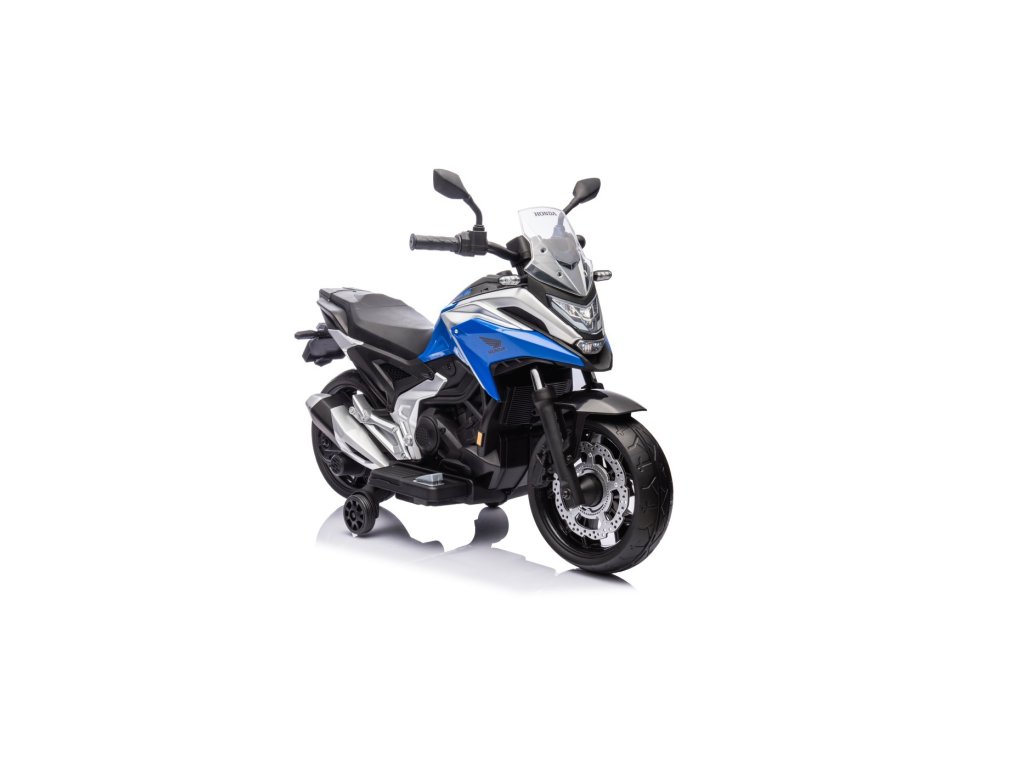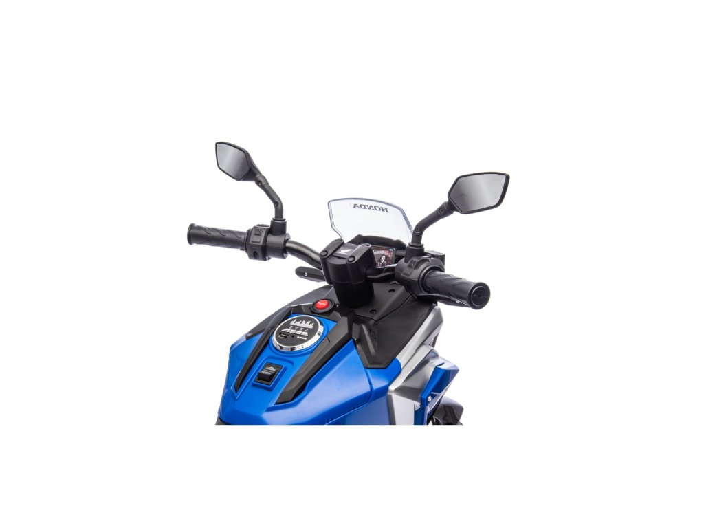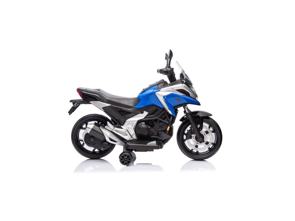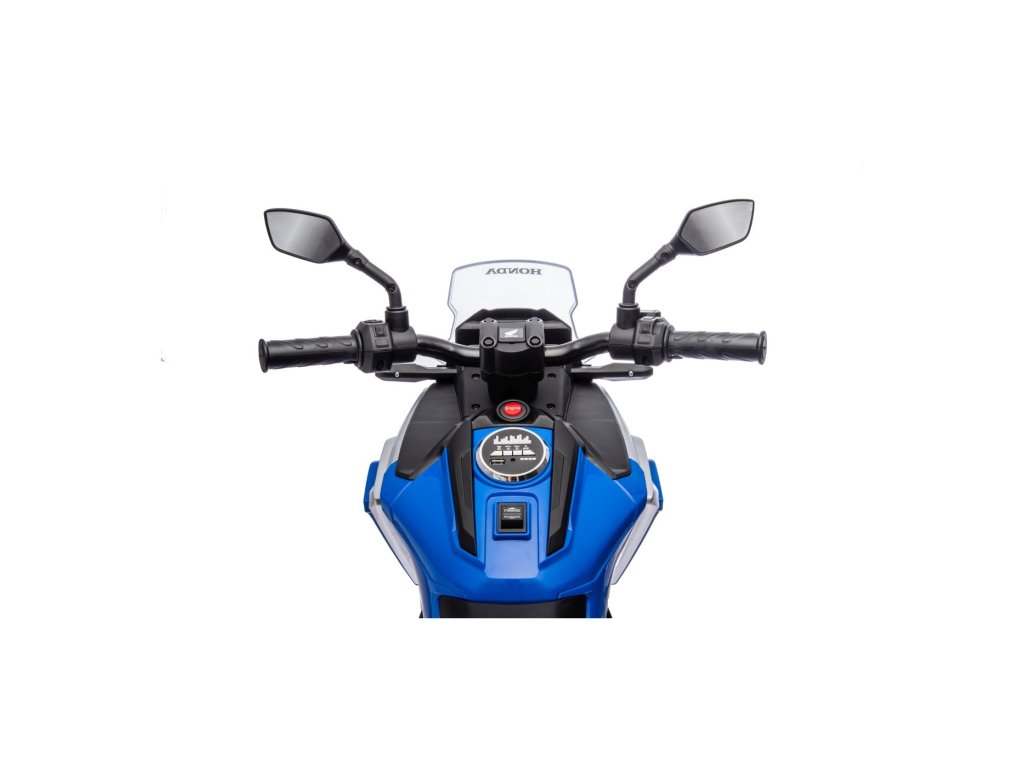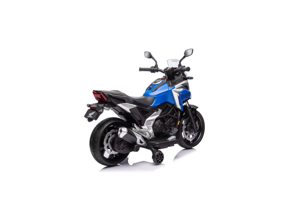 Dětská elektrická motorka má plastová kola s gumovým lemem a motor o výkonu 70W. Mezi vybavení patří přední LED světla a hudební panel s Bluetooth, AUX, MP3, USB a předem nahranými melodiemi.